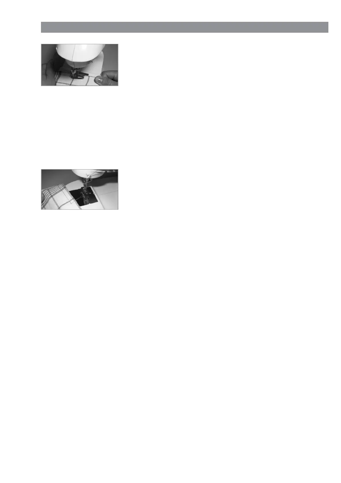 und einer Hand hinter der Nadel, damit die Naht gerade