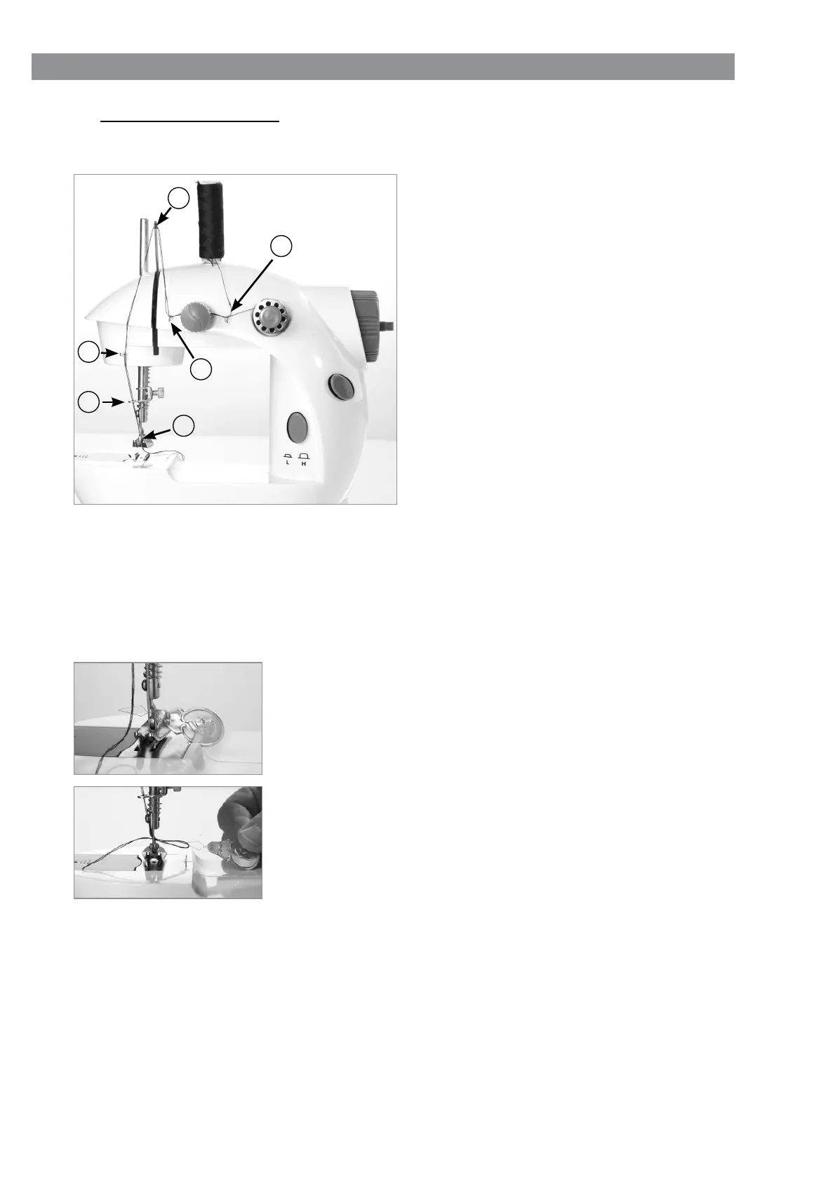 8. Breng de persvoethendel omhoog, tot hij vastklikt en leg de draad in het gleufje van
