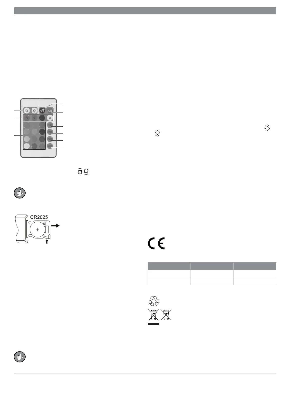 • Afstandsbediening met 1 x 3 V-knoopcelbatterij (CR2025),