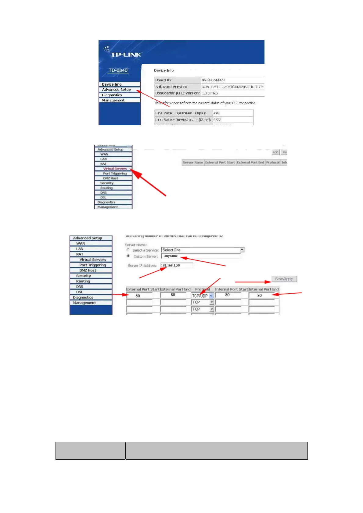 4. Fill “80” under the right port start or port end, "192.168.1.50" under Server