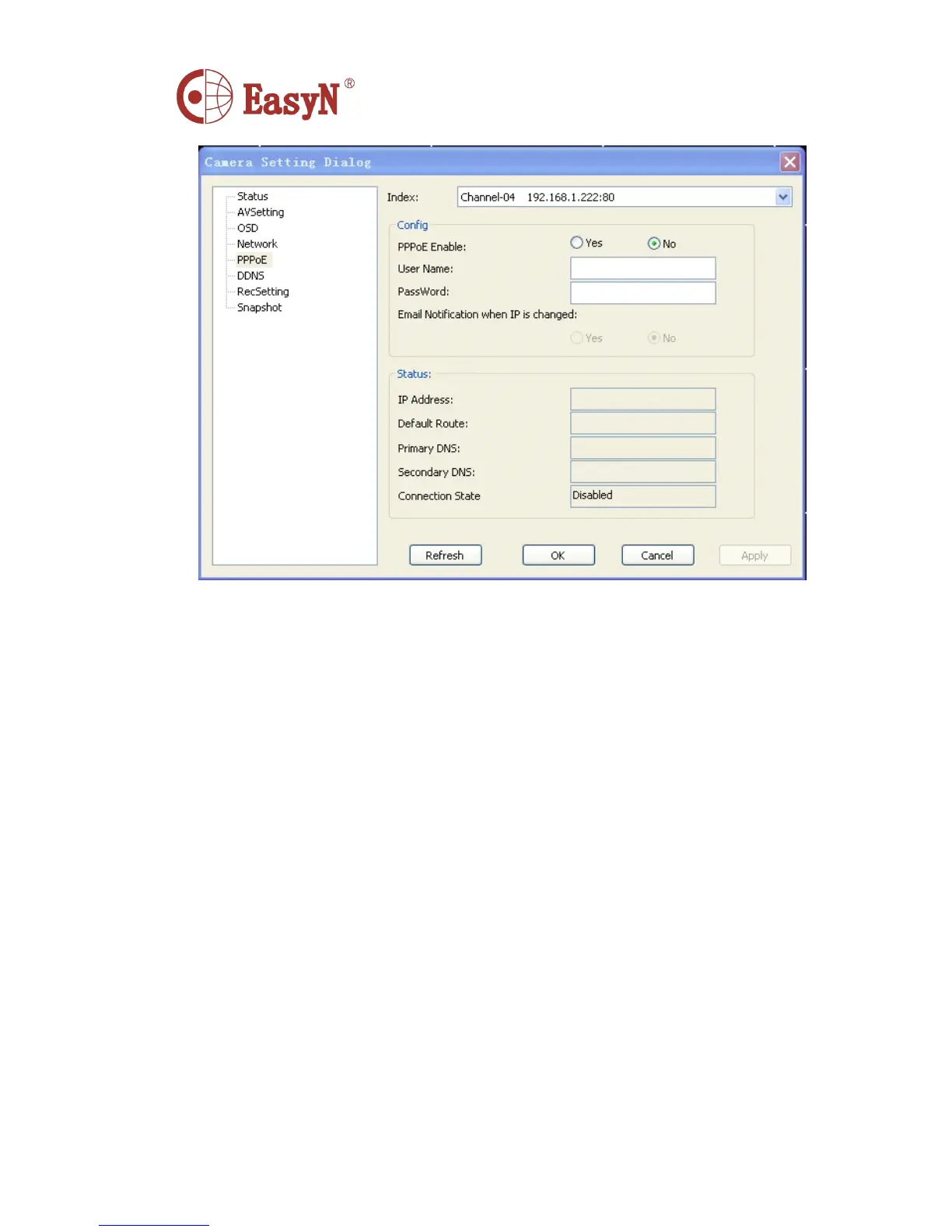 Status : When the connection is successful,we can see the Ip addres,DNS,connection status and