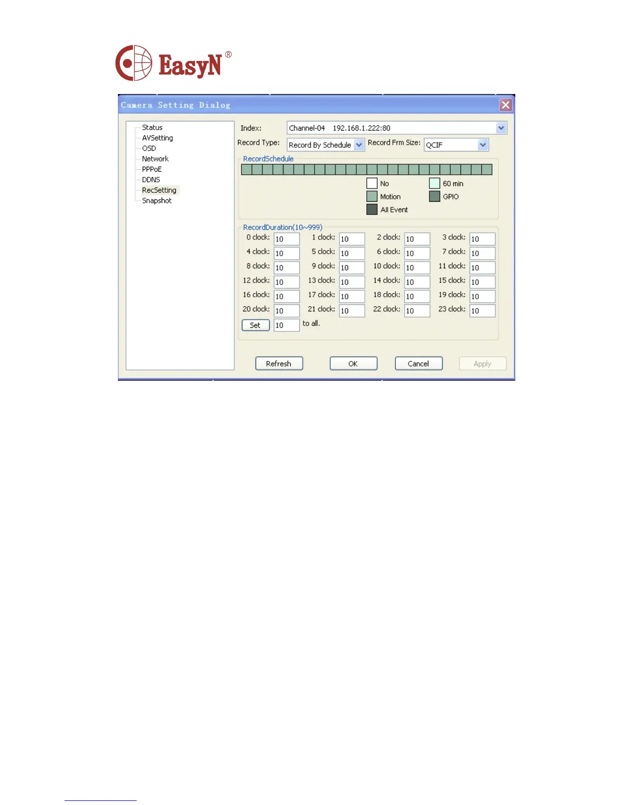 Record Firm Size : Set the resolution of video file size, N ote:CIF,D1,QCIF,FREE 。