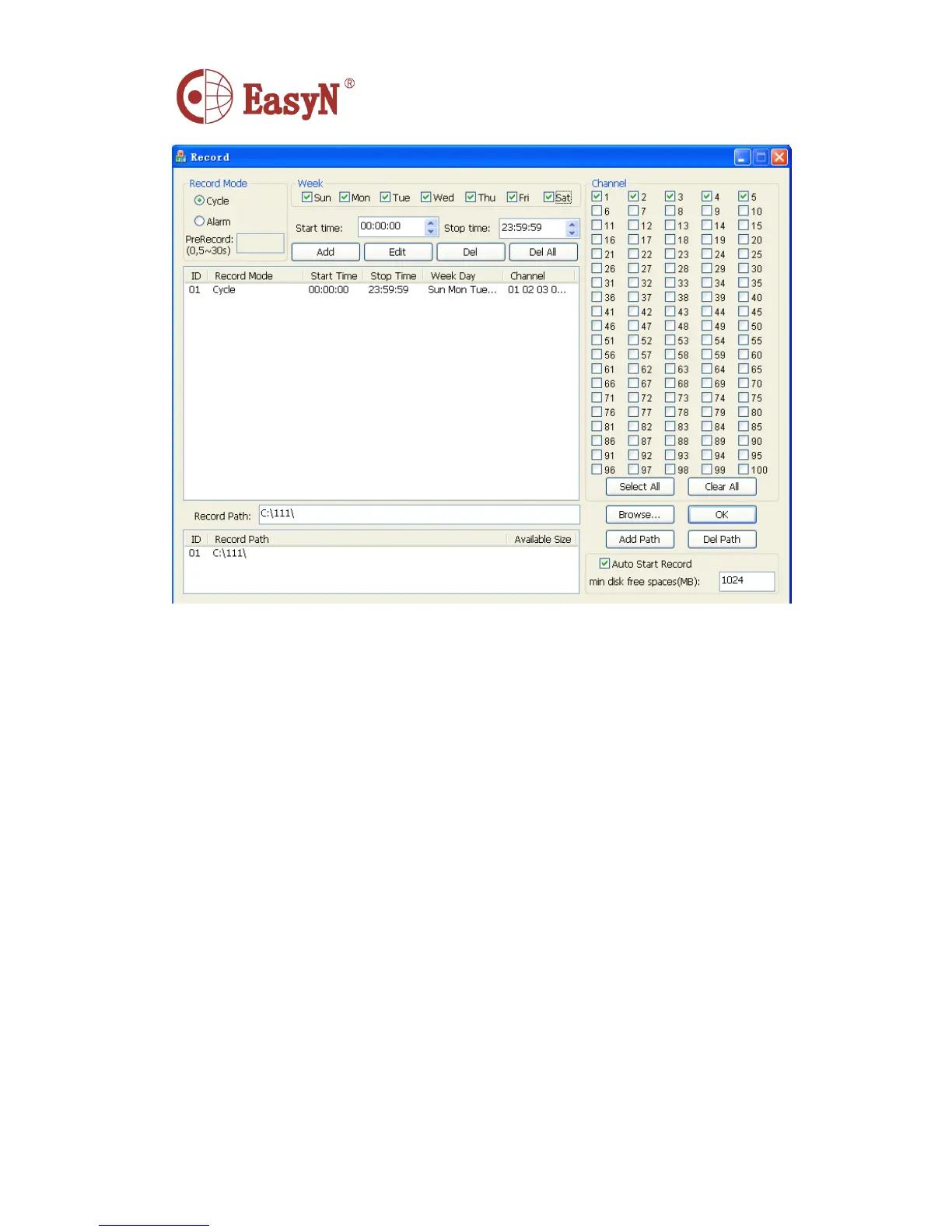 Add Path: Add save path, when the residual disk spaces less than the Min disk free