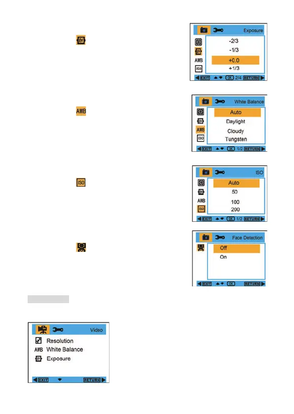 Rufen Sie im Videomodus mit der Menü/Links-Taste das Menü auf, und wählen Sie die Einstellung