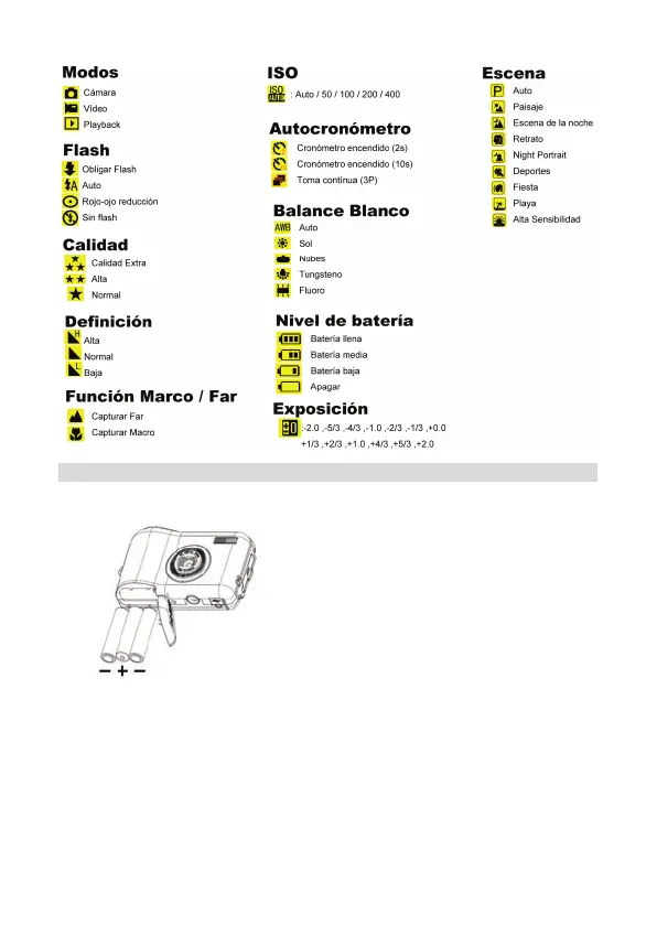 3. La cámara digital se apagará cuando la batería es insuficiente.