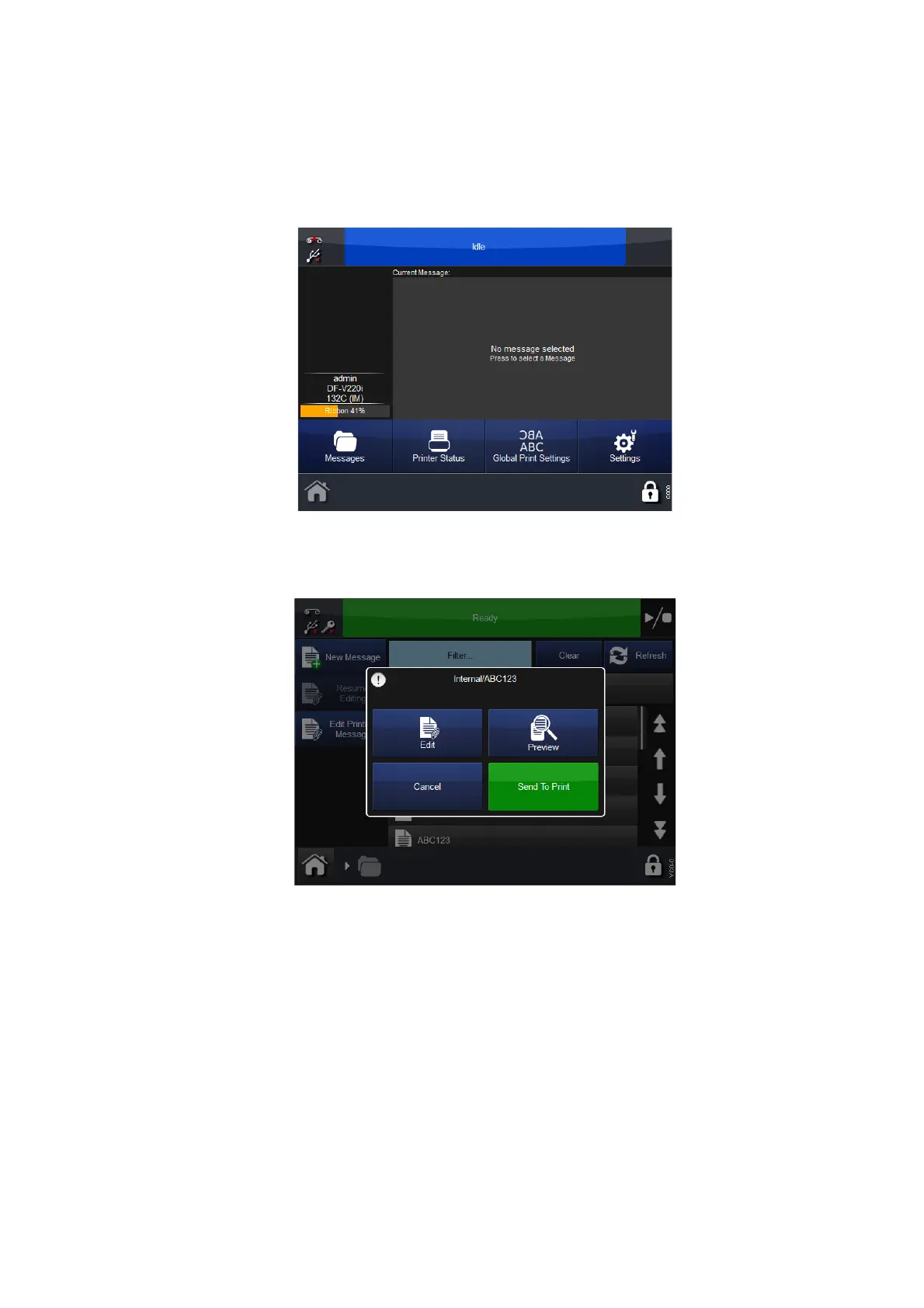 message store and select the required message. The screen as shown