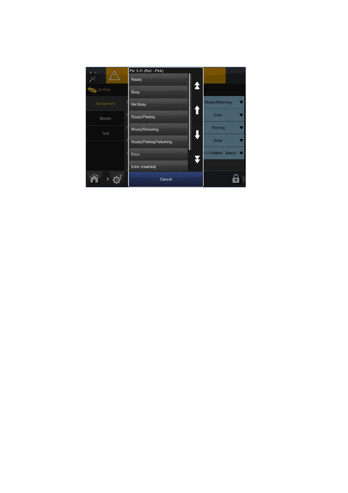 This tab shows the pin, input and output assignments. Pull-down menus
