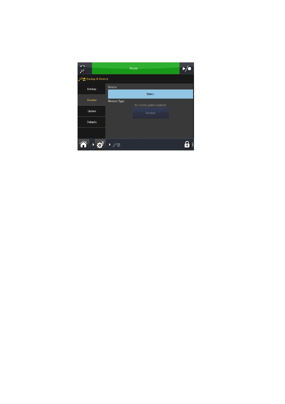 • Select an available Restore Type and select the Restore button.