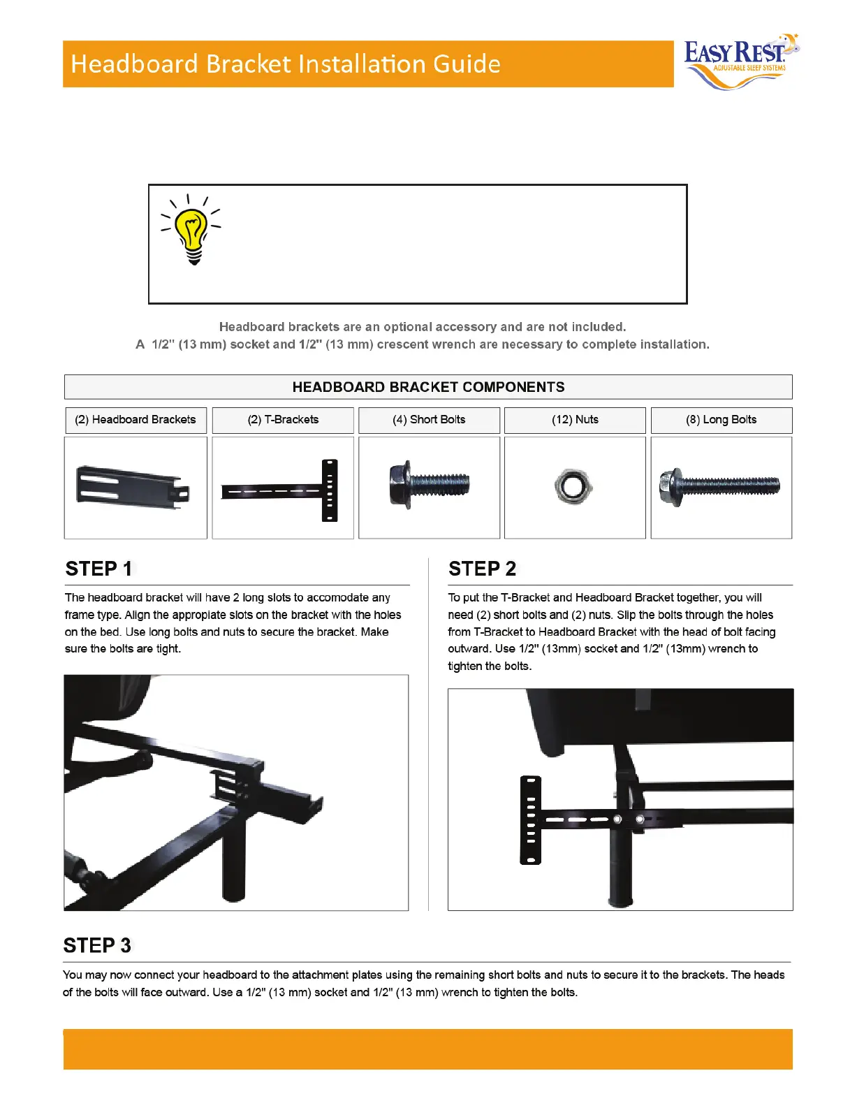 INSTRUCTIONS MAY CAUSE HEADBOARD BRACKET INTERFER
