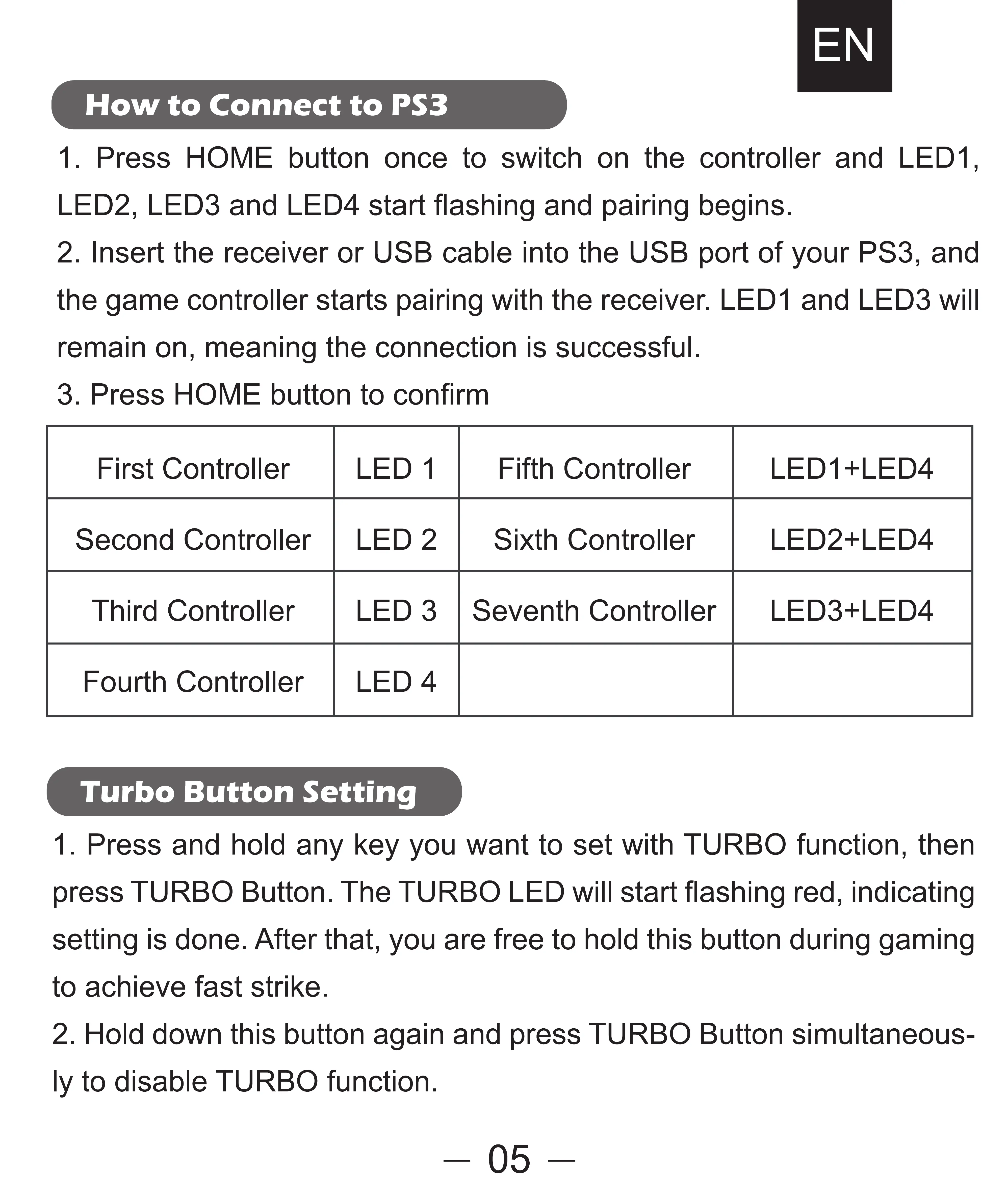 the game controller starts pairing with the receiver. LEDI and LED3 will