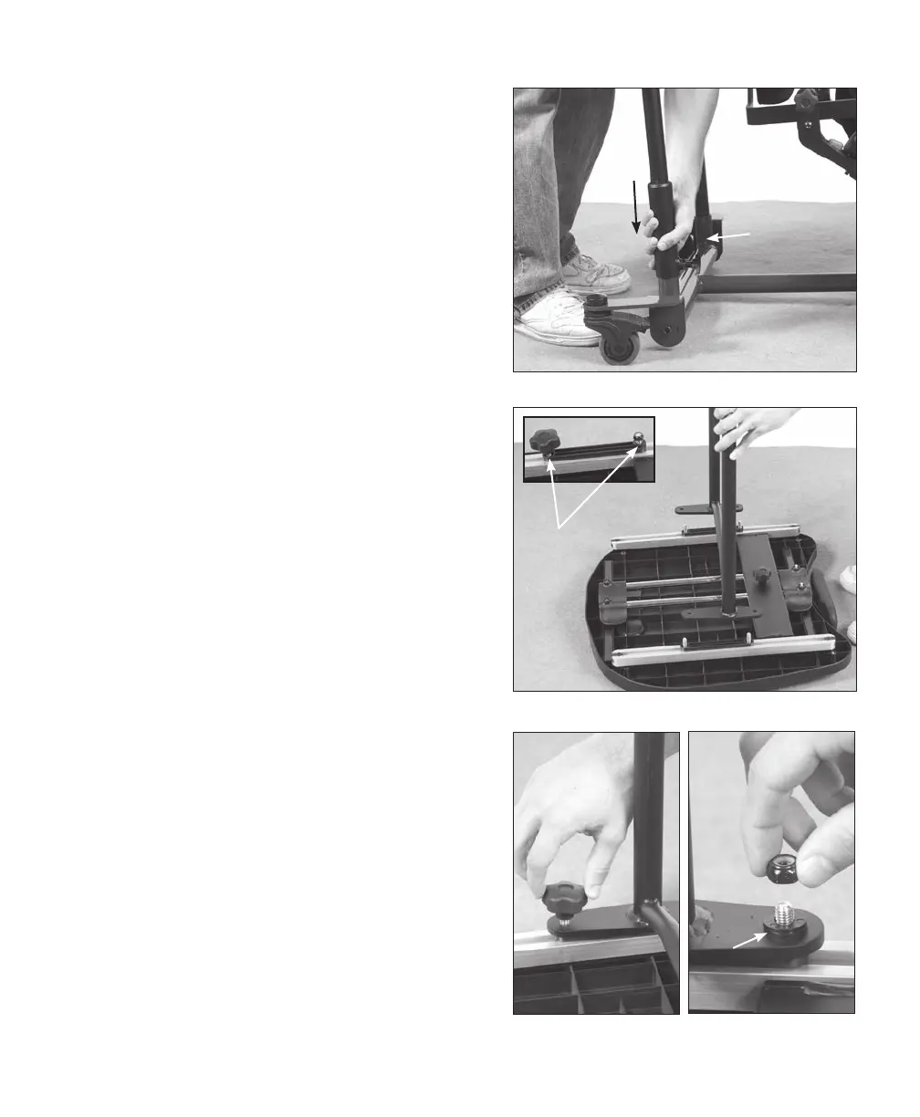 58. Adjust the foot plate by loosening the red ratchet