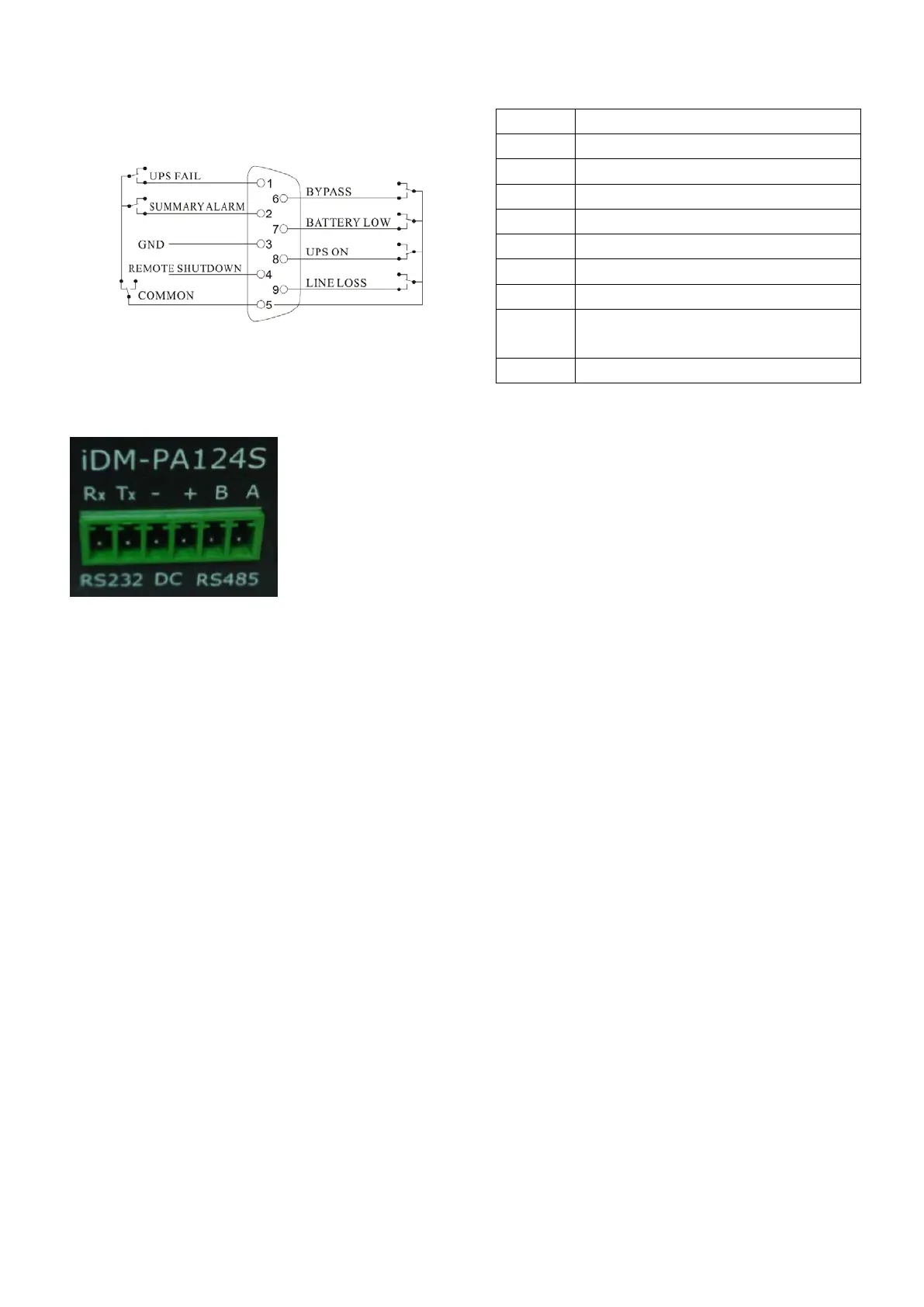 RS485 card is also designed for this series UPS, A(+) and B(-) on the right are the output of RS485.