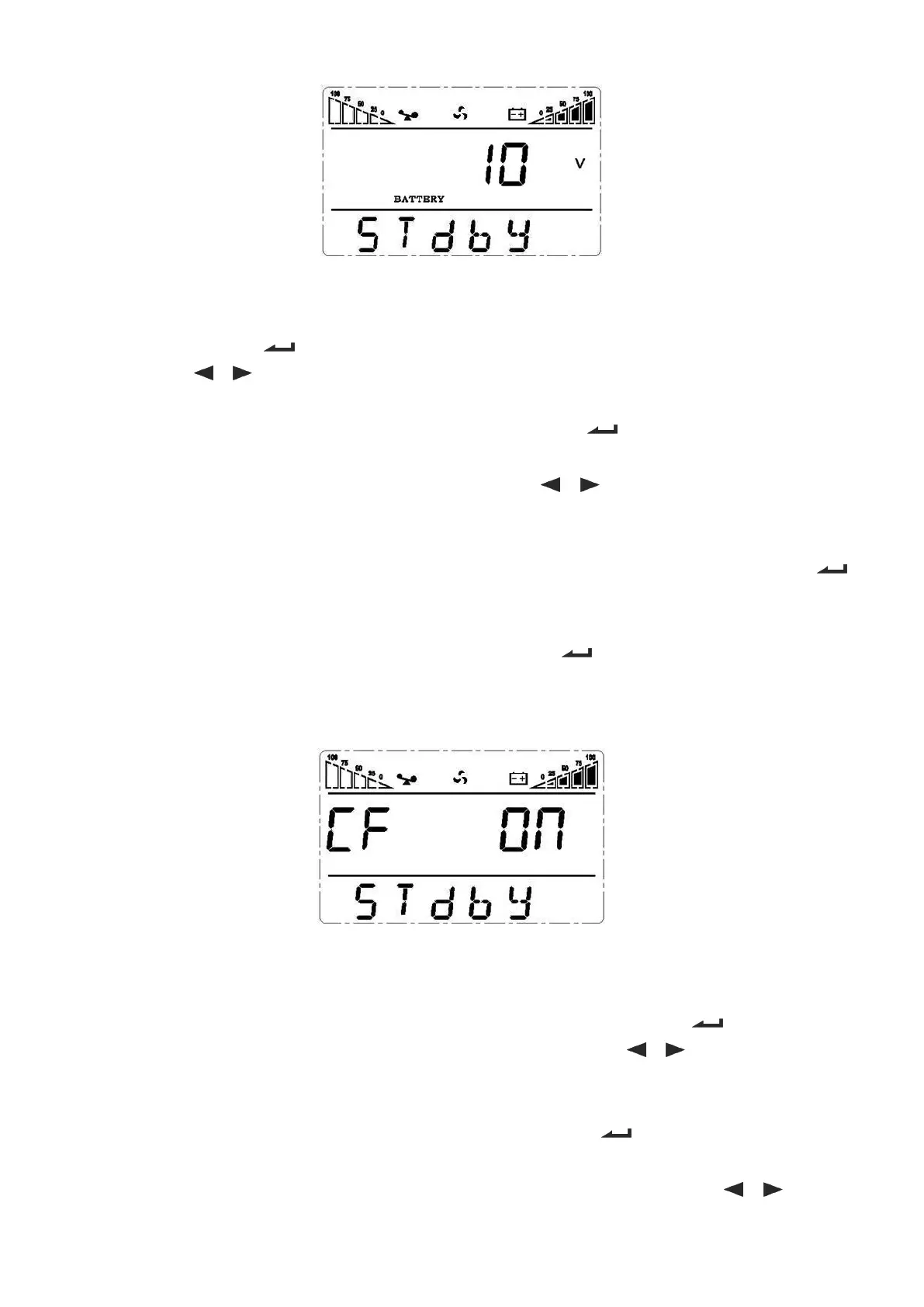 ⑤After setting CF at “ON ”, UPS would be back in STDBY Mode. The defa ult va lue of CF is OFF.