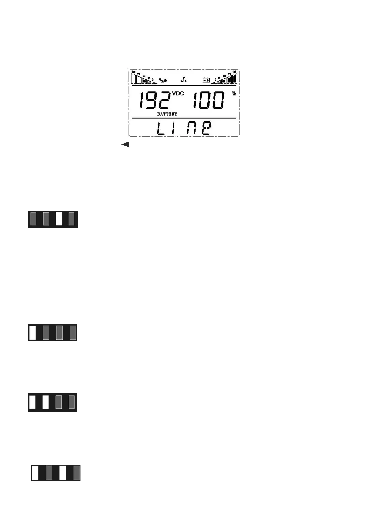 LED indications on front panel in battery mode are as following: both the inverter green LED and battery