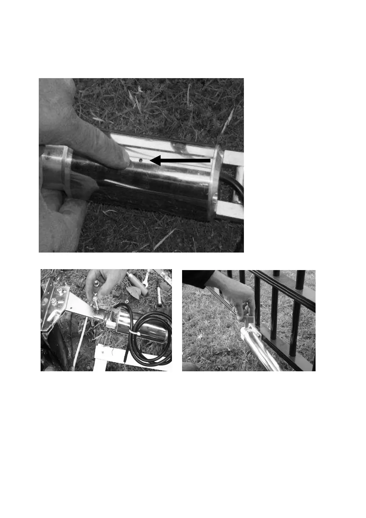 Mount the arm to the brackets making sure the drain holes are at the bottom. You may