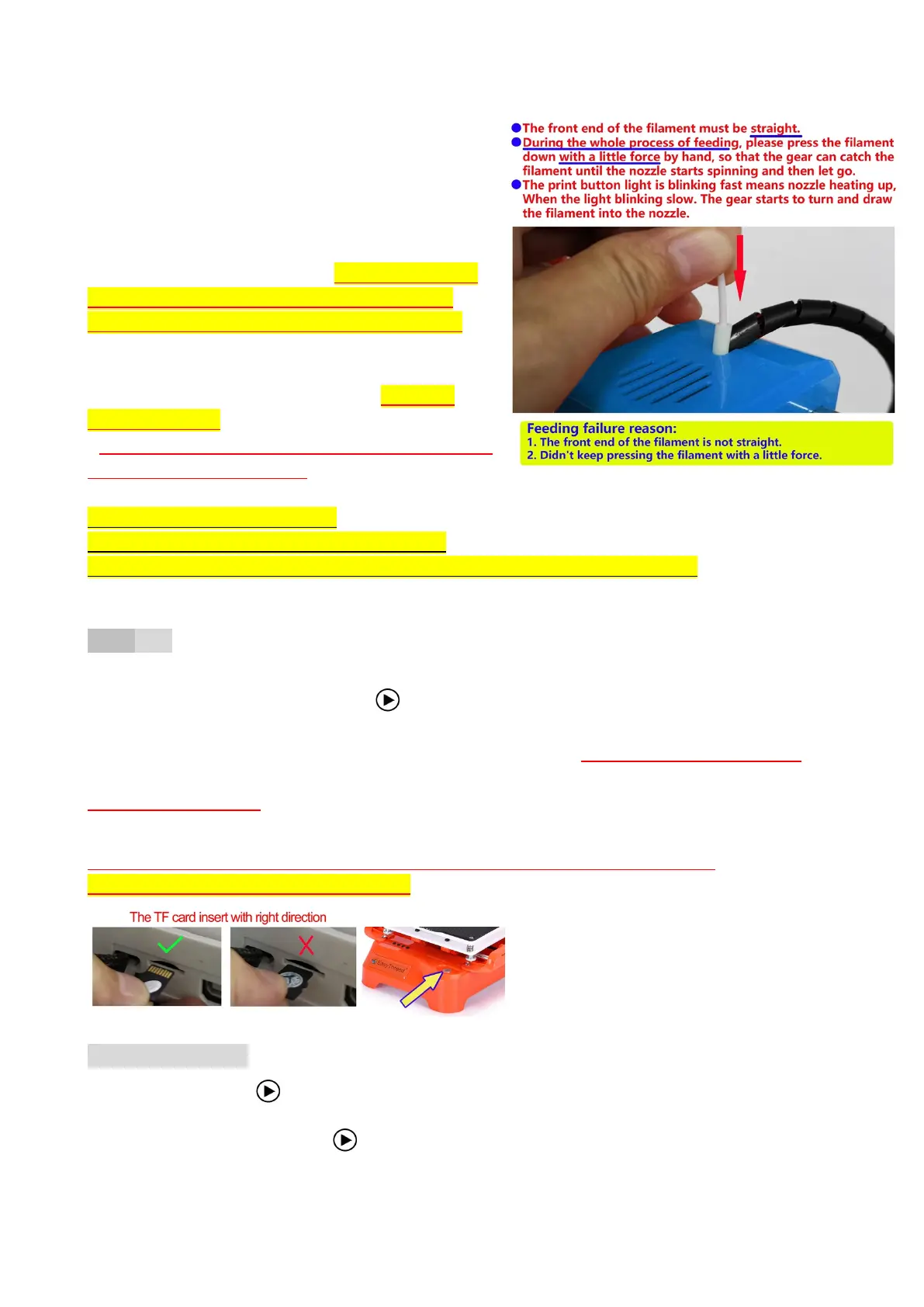 Insert the TF card with gcode file (the direction of the TF card should be correct as shown in the
