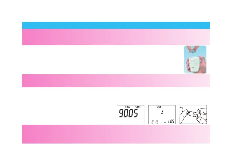 3. Insert the test strip into the test strip slot on the meter. The meter will rst display