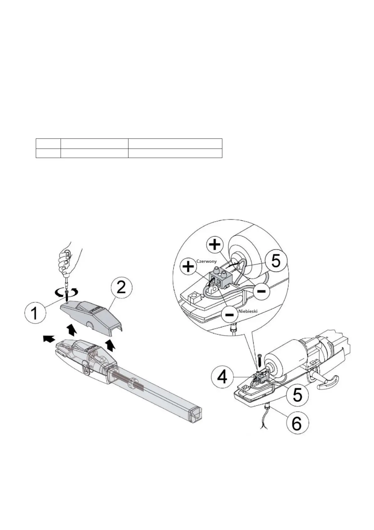 Przymocować przewody zasilania (5) 2x1,5 mm2 do wtyczki (4). Należy pamiętać, że przewód czerwony to „+”,
