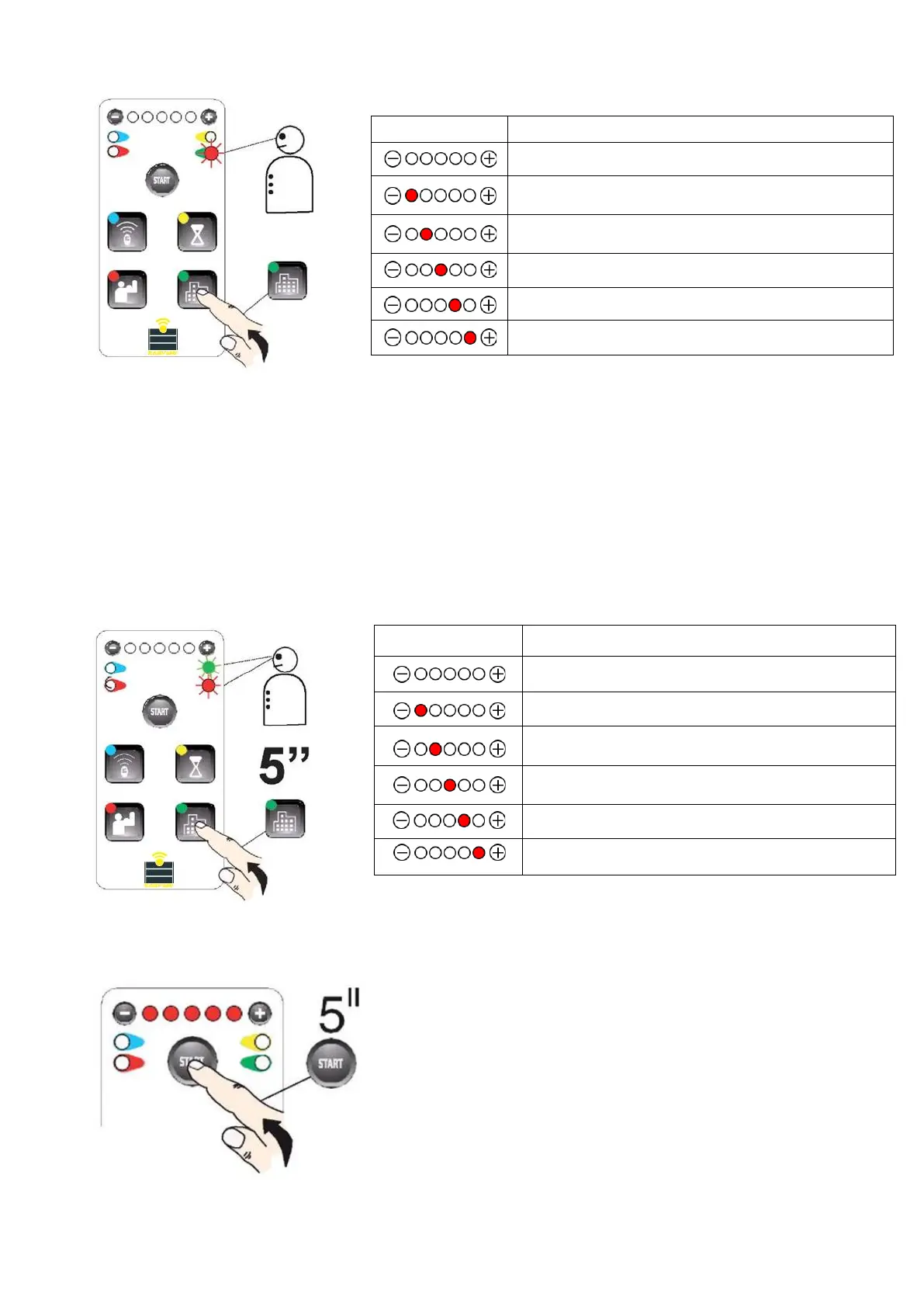Przytrzymać przycisk START przez 5 sekund. 5 diod LED