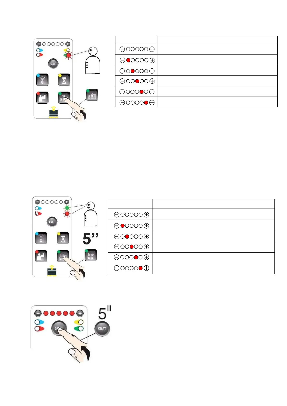 Pressing the “+” button activates the function (the red LED turns on) while pressing the “-” button disables