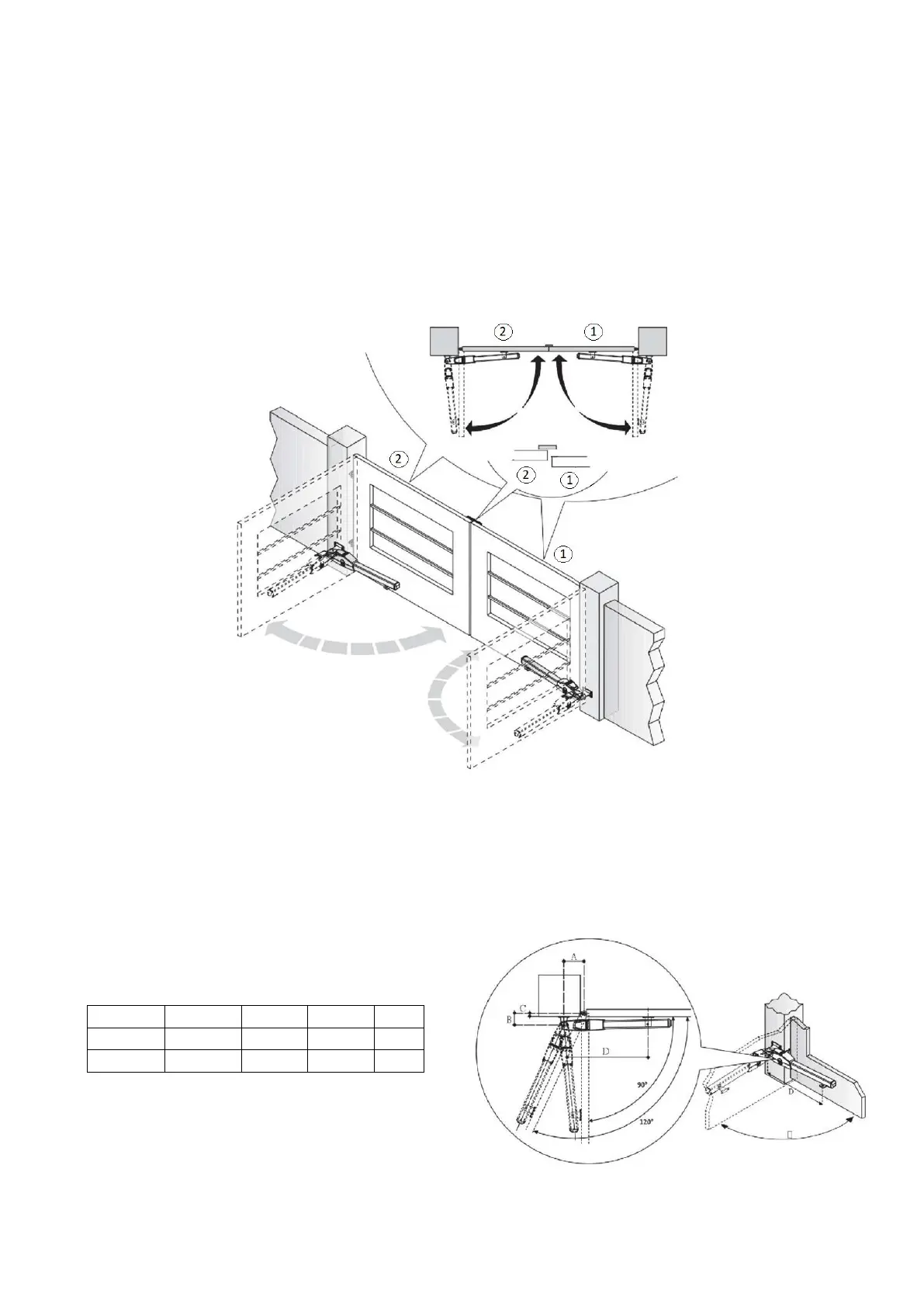 Křídlo 2: otevírá se jako druhé, když je brána zavřená a pohybuje jako první, když se brána otevírá. Končí svůj