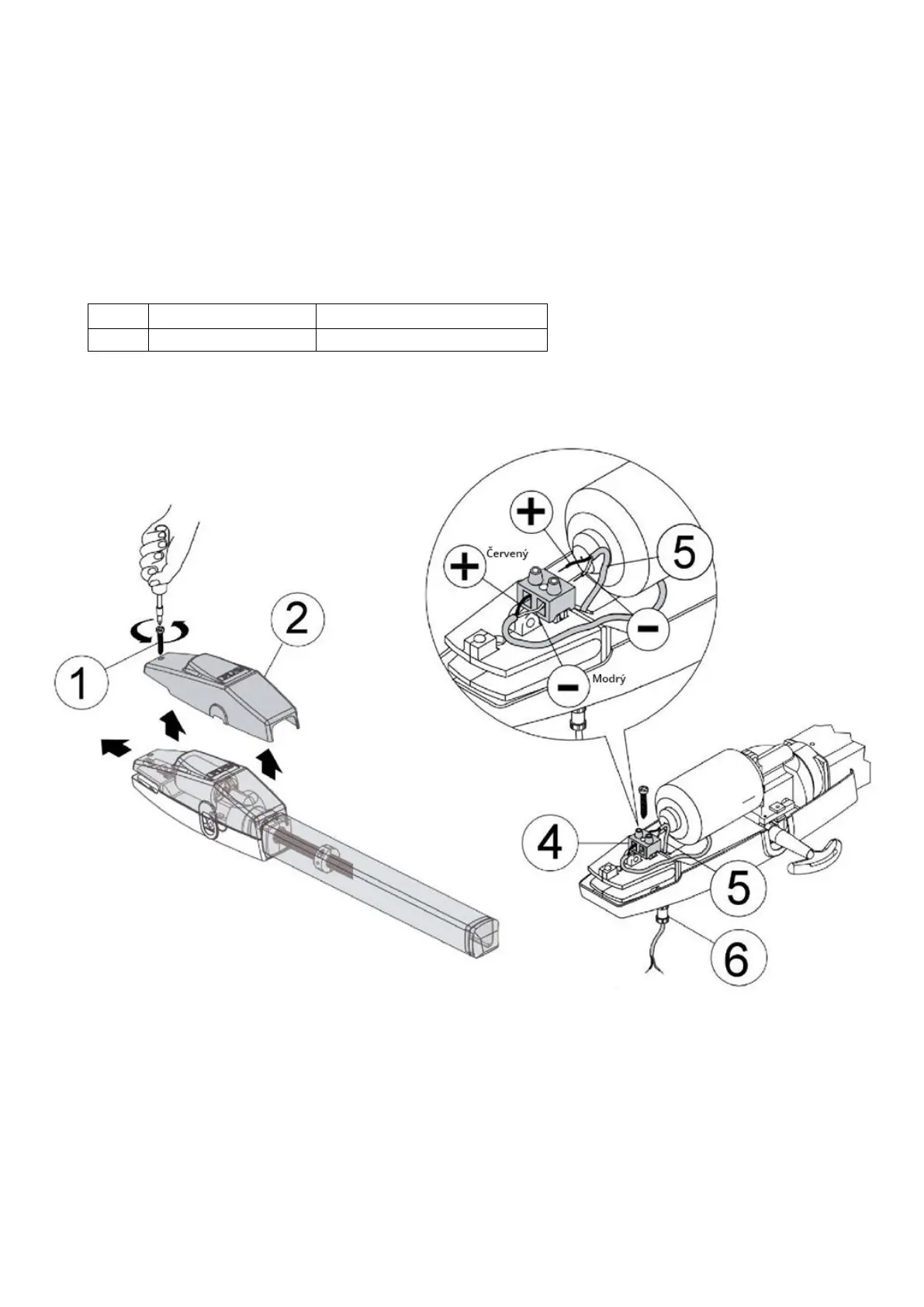 do zástrčky (4). Pamatujte, že červený vodič je „+”, modrý je „-”.
