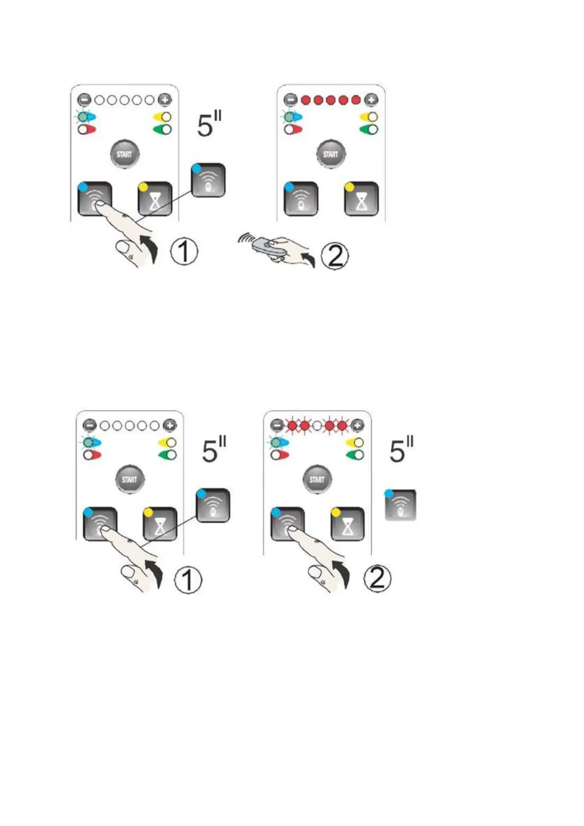 - Znovu stiskněte a podržte tlačítko programování ovladače po dobu 5 sekund, dokud nezačnou diody blikat