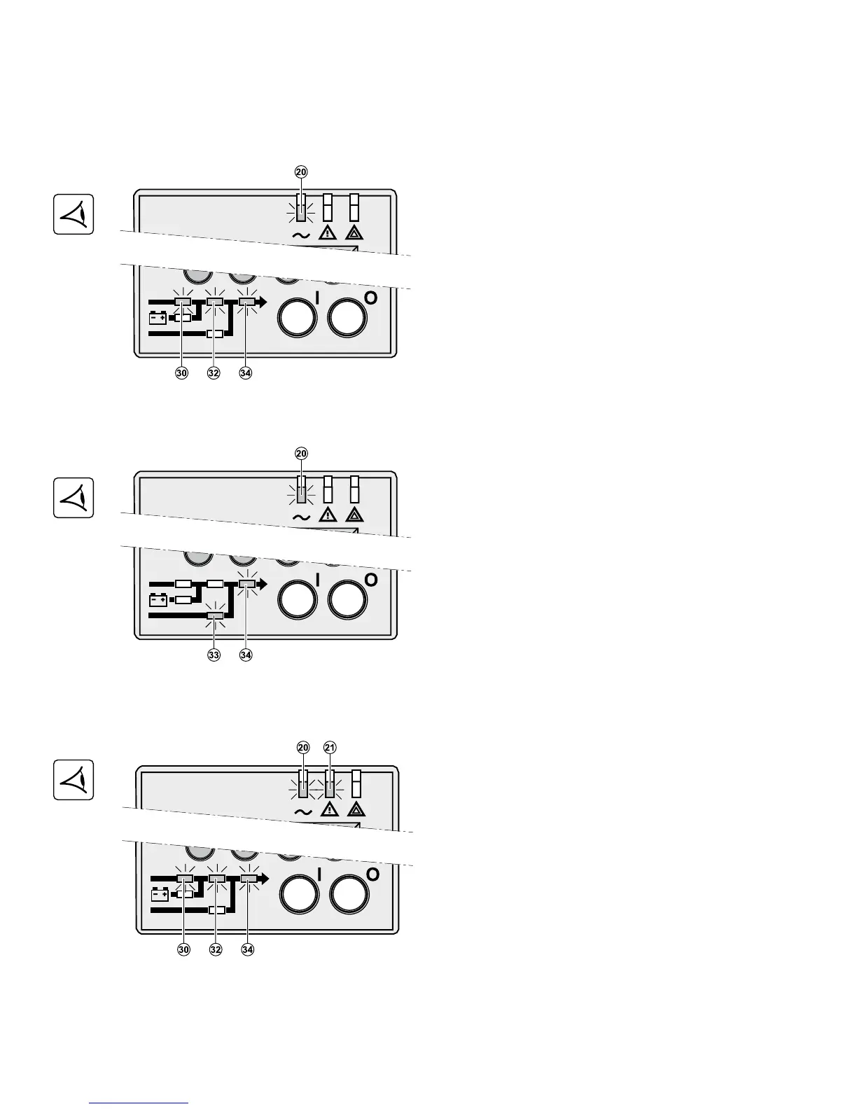 LEDs (30), (32), (34) are green.