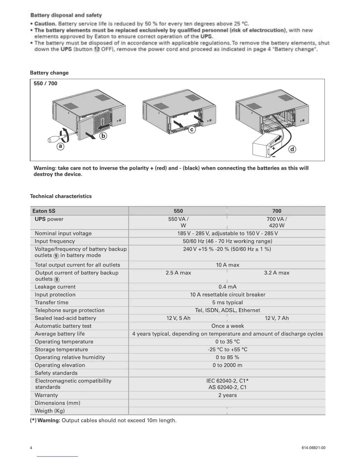Eaton 550 - Battery Management and Safety; Battery Disposal Precautions; Battery Replacement Procedure