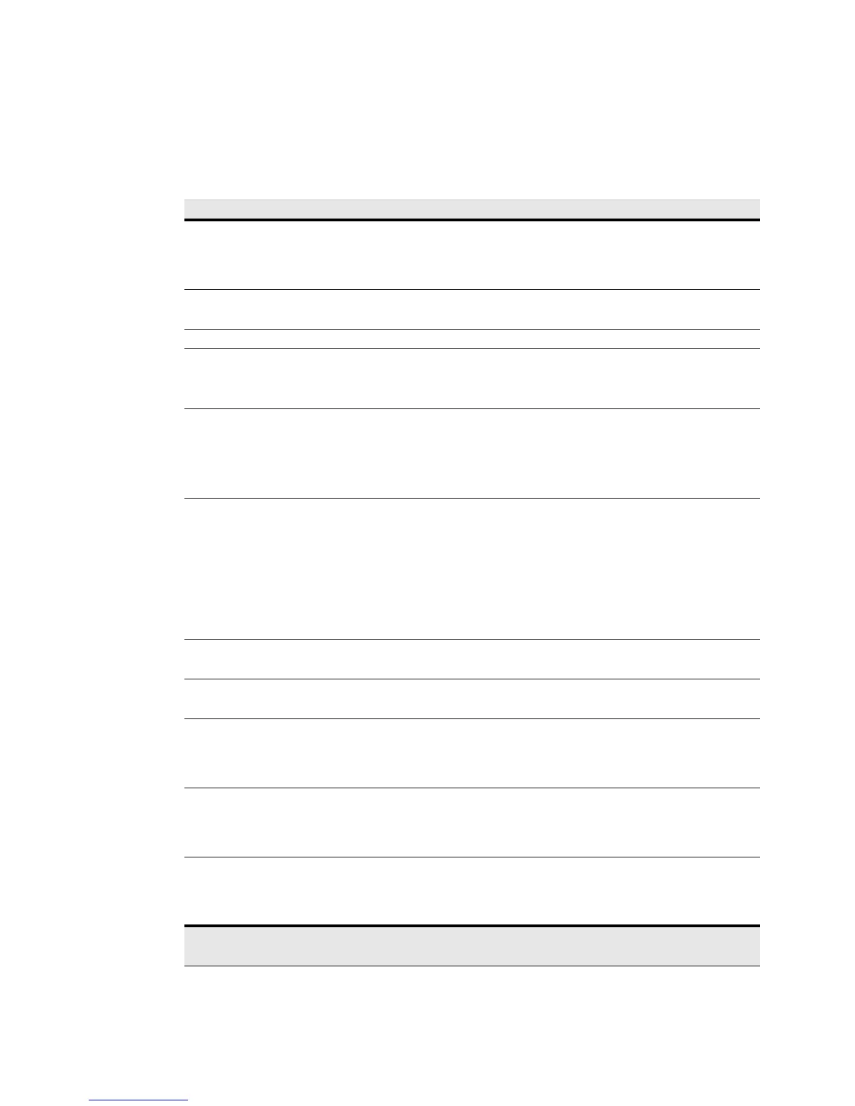 The following table displays the options that can be changed by the user.