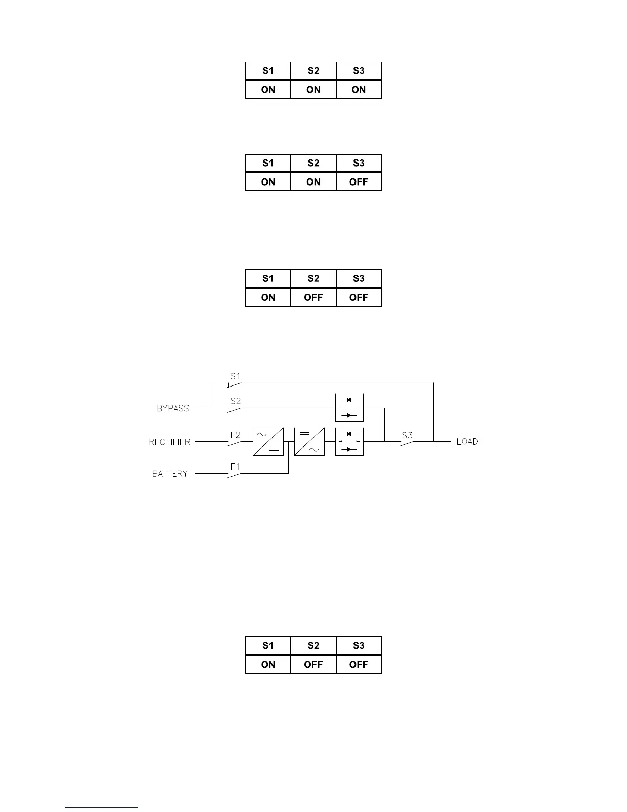 3. Turn the S2 switch to the ON position to connect the static bypass input to the UPS: