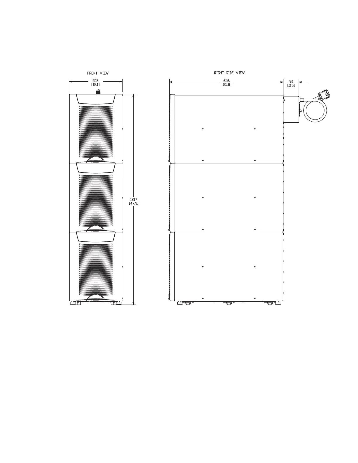Eaton 9155 UPS - Figure 5. Extended Battery Module Dimensions (3-High Front and Right Side Views)