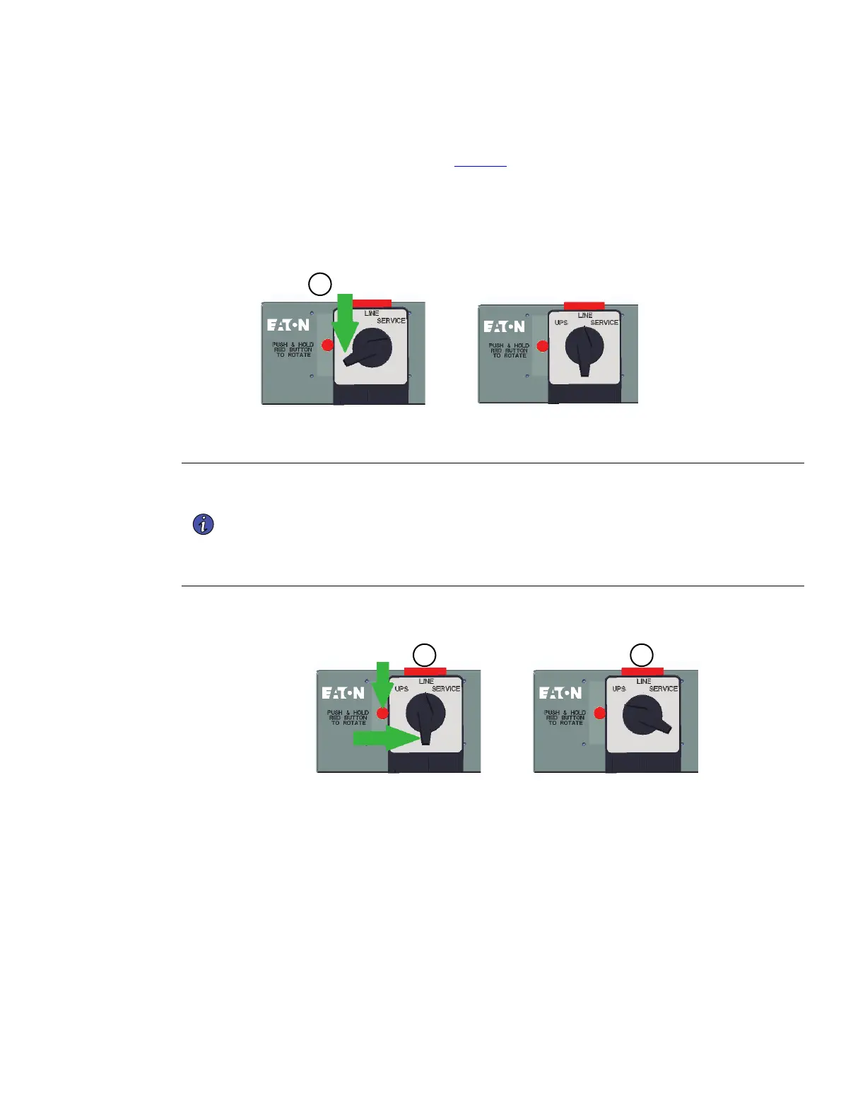 NOTE 1 Pressing the red button sends the UPS into Internal Bypass mode. This allows the UPS
