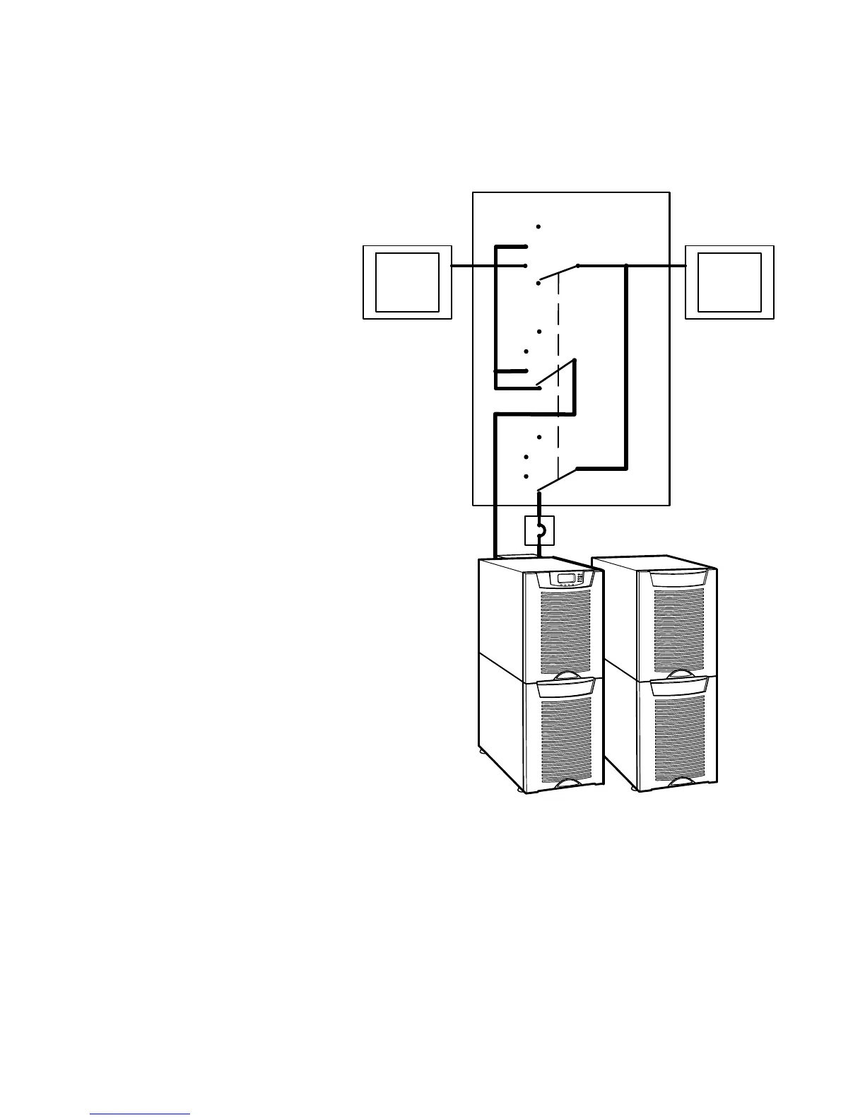 Figure 47 shows a UPS with a separate battery cabinet and a wall-mounted bypass