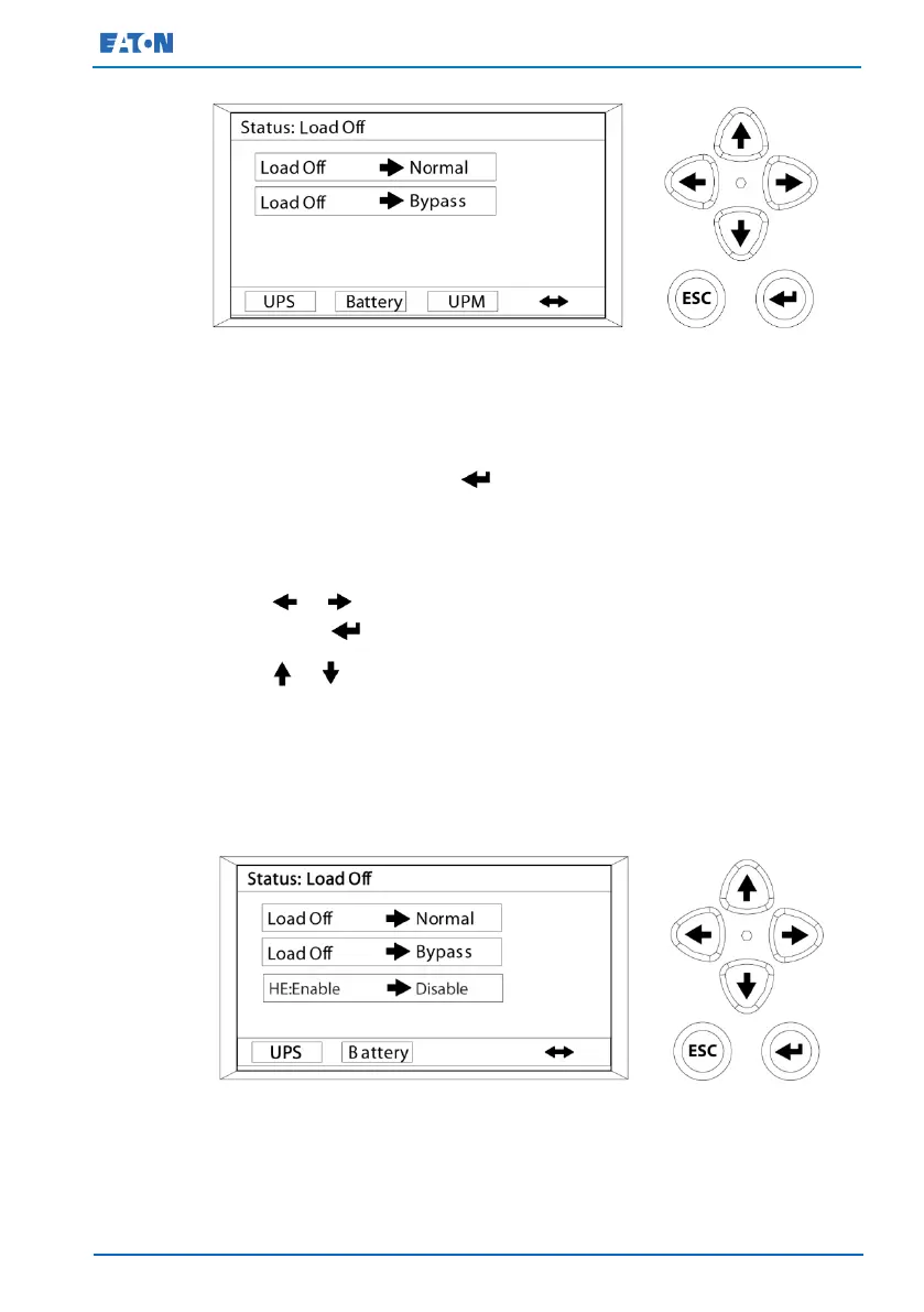 Use the or push button to highlight the desired command screen,