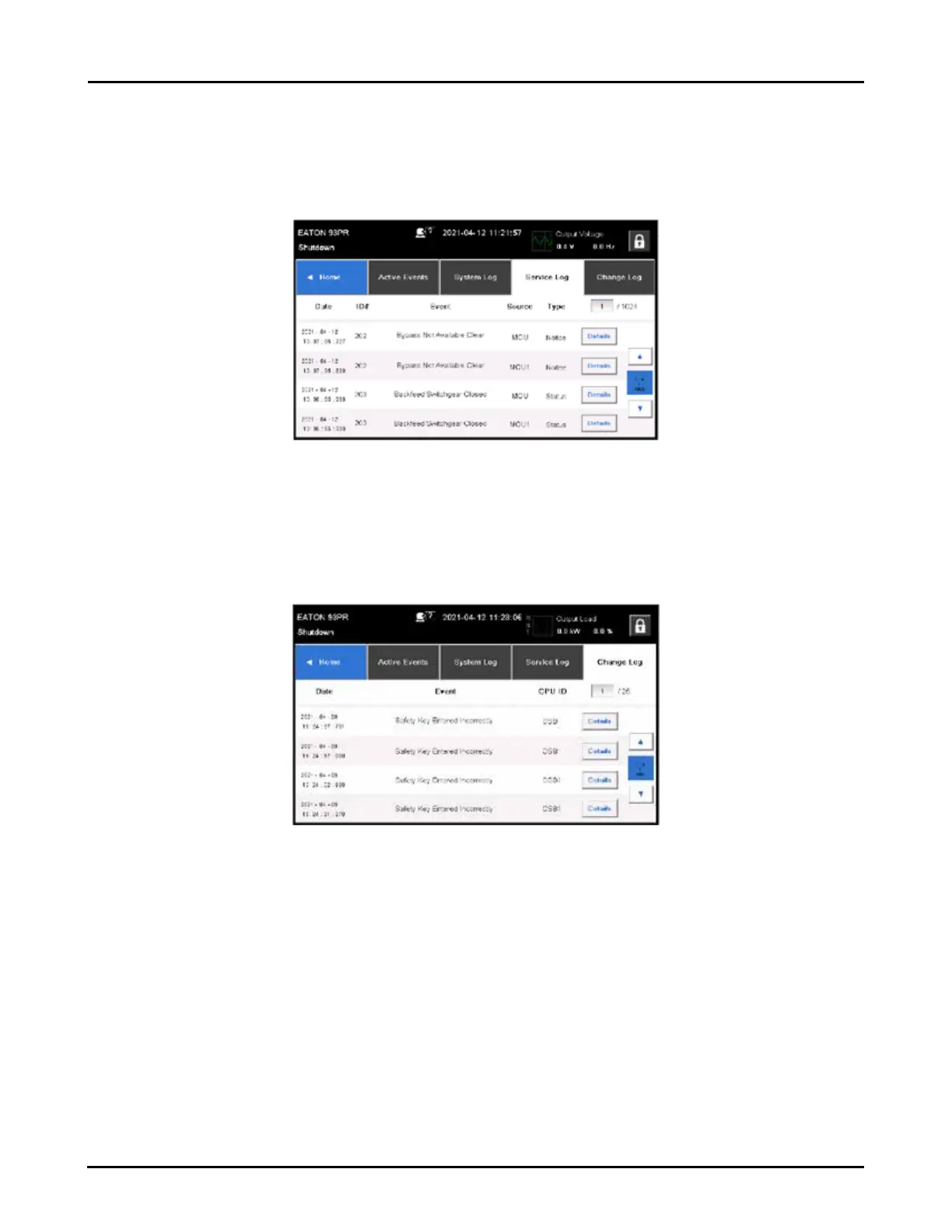 Figure 6-36: Service Log Screen