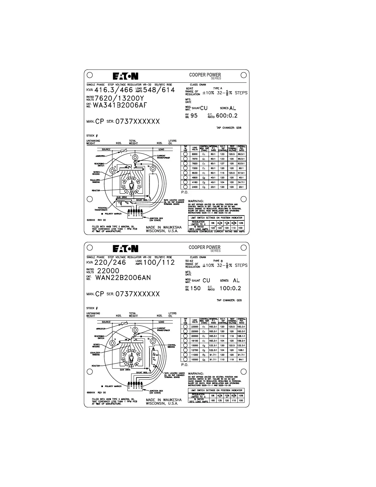 Figure 3-3. Nameplates, 60 Hz regulator and 50 Hz regulator shown.