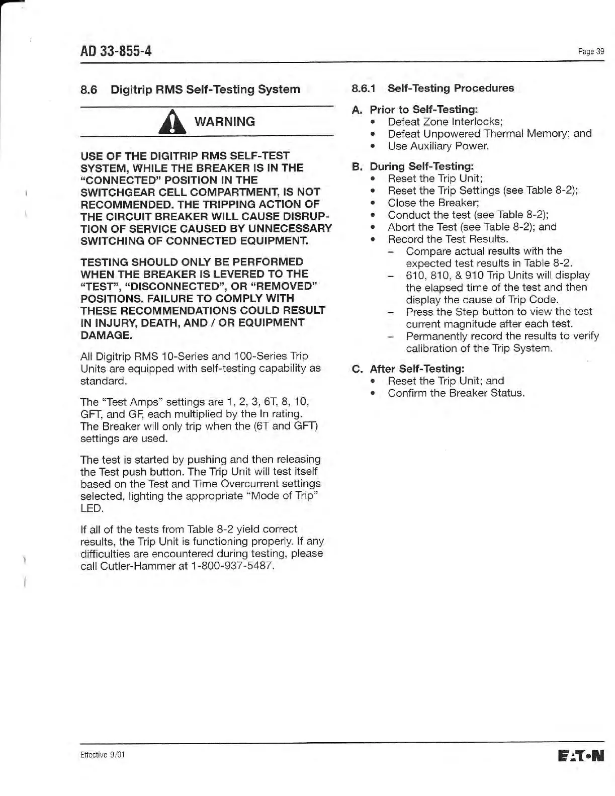 Eaton Cutler-Hammer Digitrip RMS 510 - Digitrip RMS Self-Testing System; Self-Testing; Digitrip RMS 810 & 910 PT Module