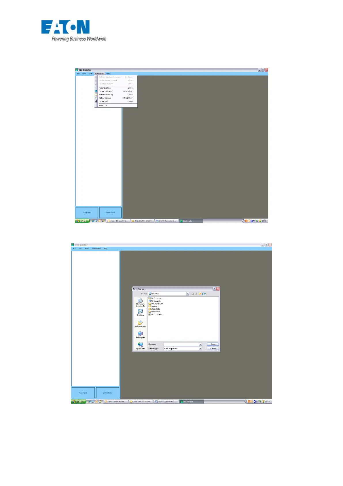 Choose ‘commissiom’ then ‘retrieve event log’. When ‘save log as’ dialog box appears give the file a