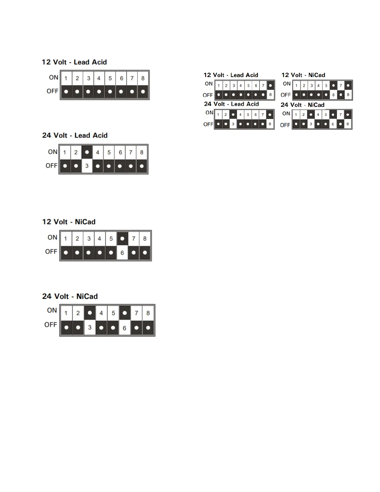 To select 24 Volt battery charging with NiCad batteries, set