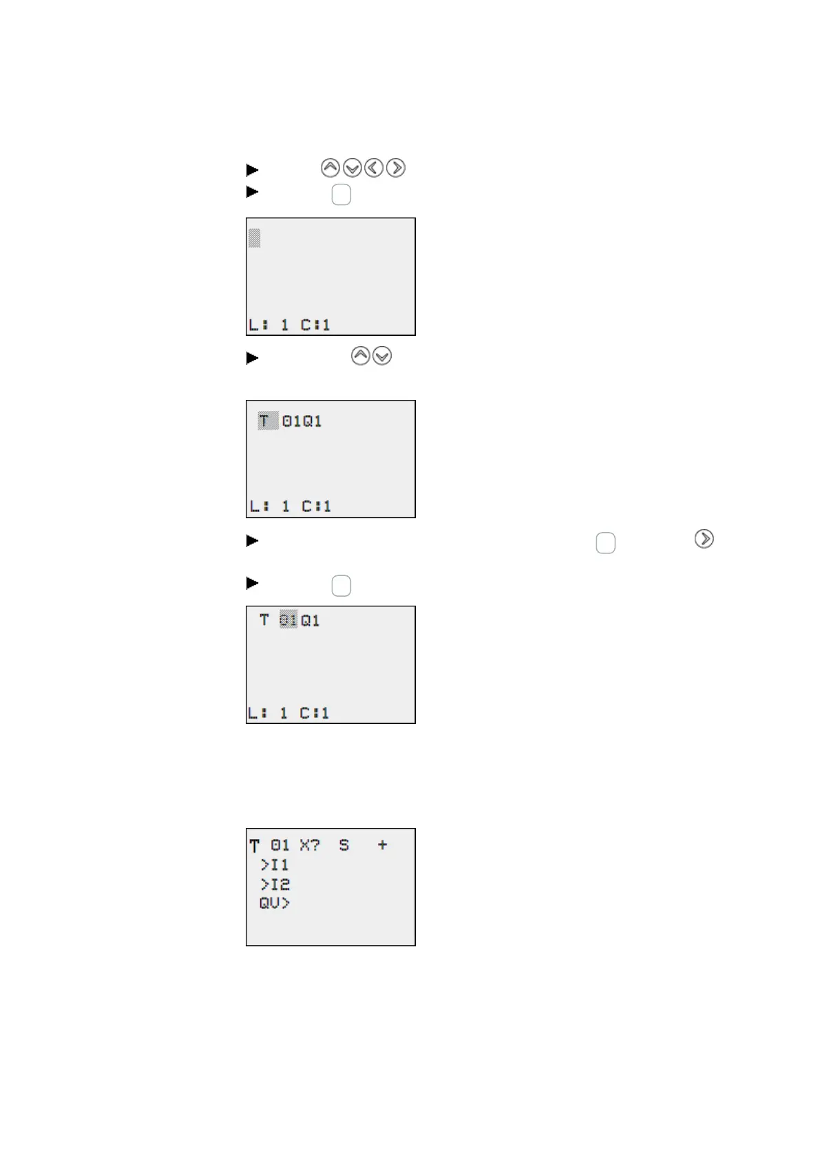 Use the buttons to move the cursor to a free contact or coil field.