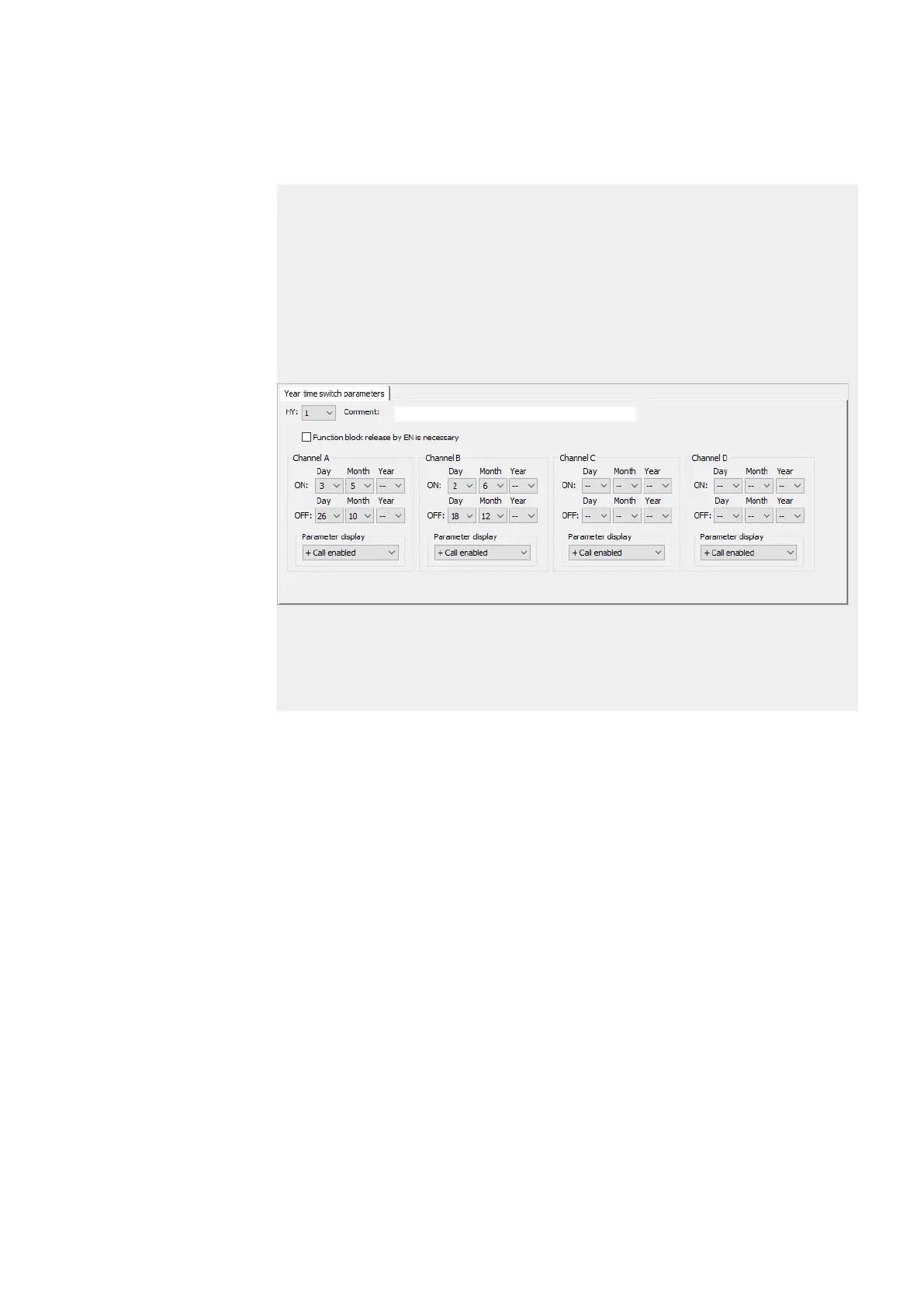 goes off at 00:00 on day 27. The time switch comes on at 00:00 on day 2 of the months