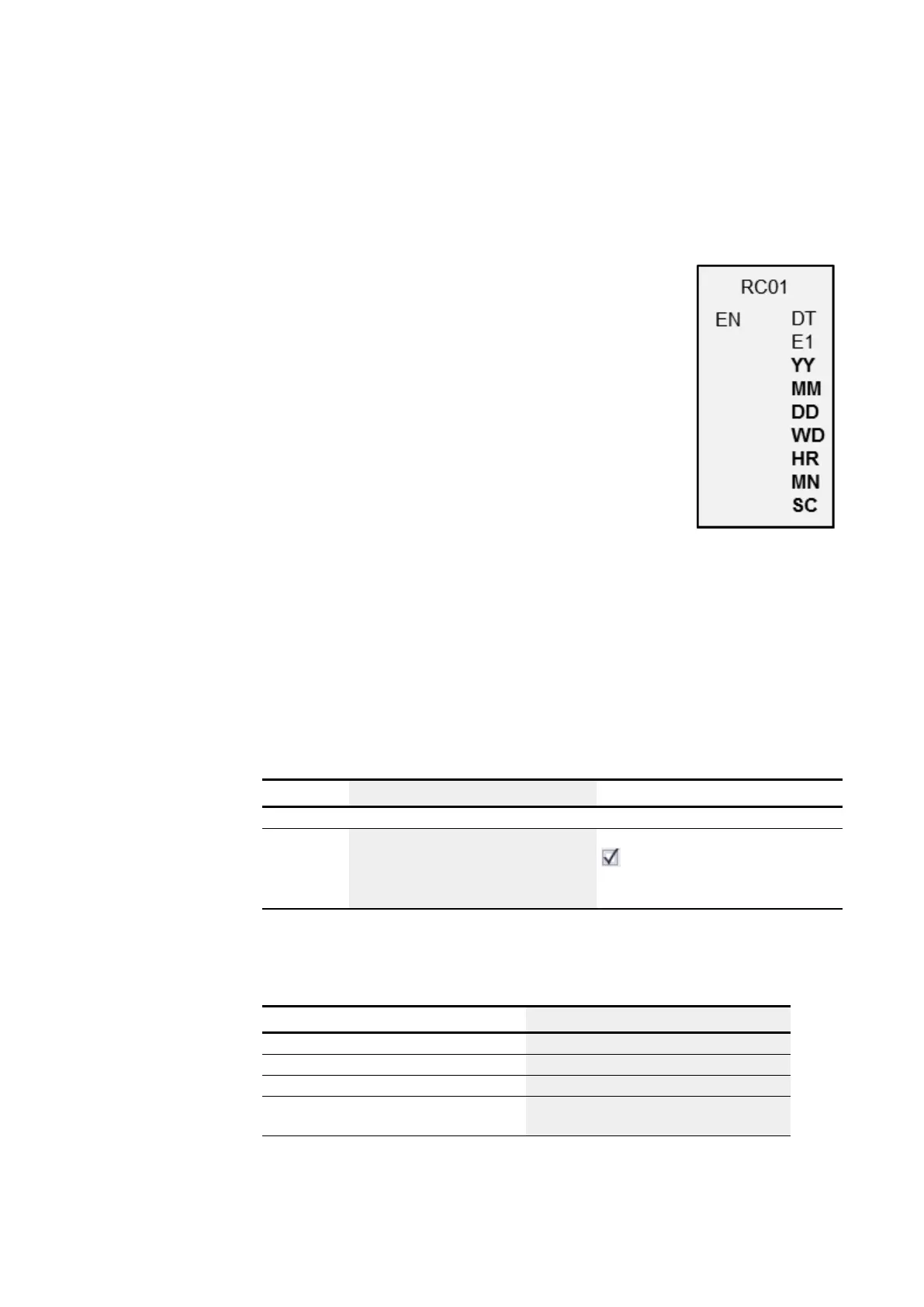 clock will be output at the function block outputs: YY (year), MM (month), DD (day), WD