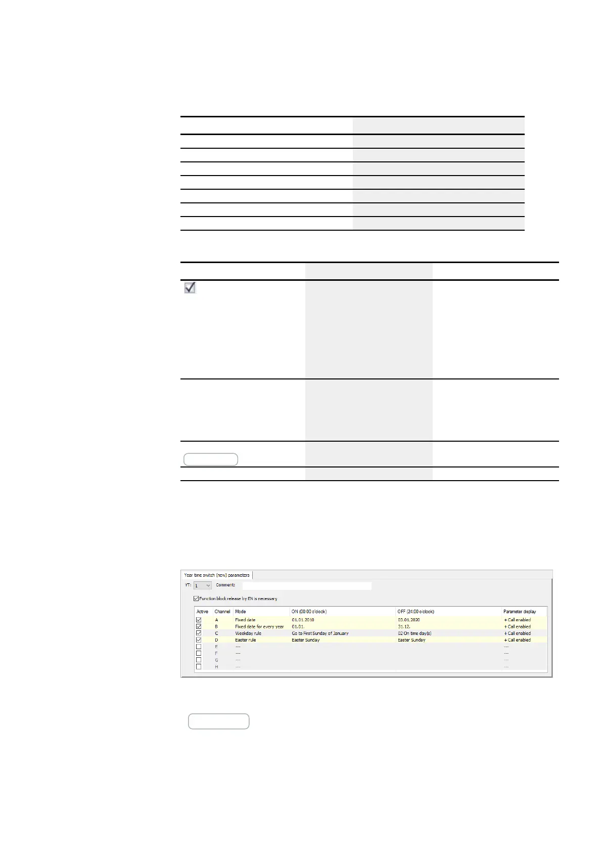 Figure 124: Year time switch (new) parameters tab for YT function block with example showing all four