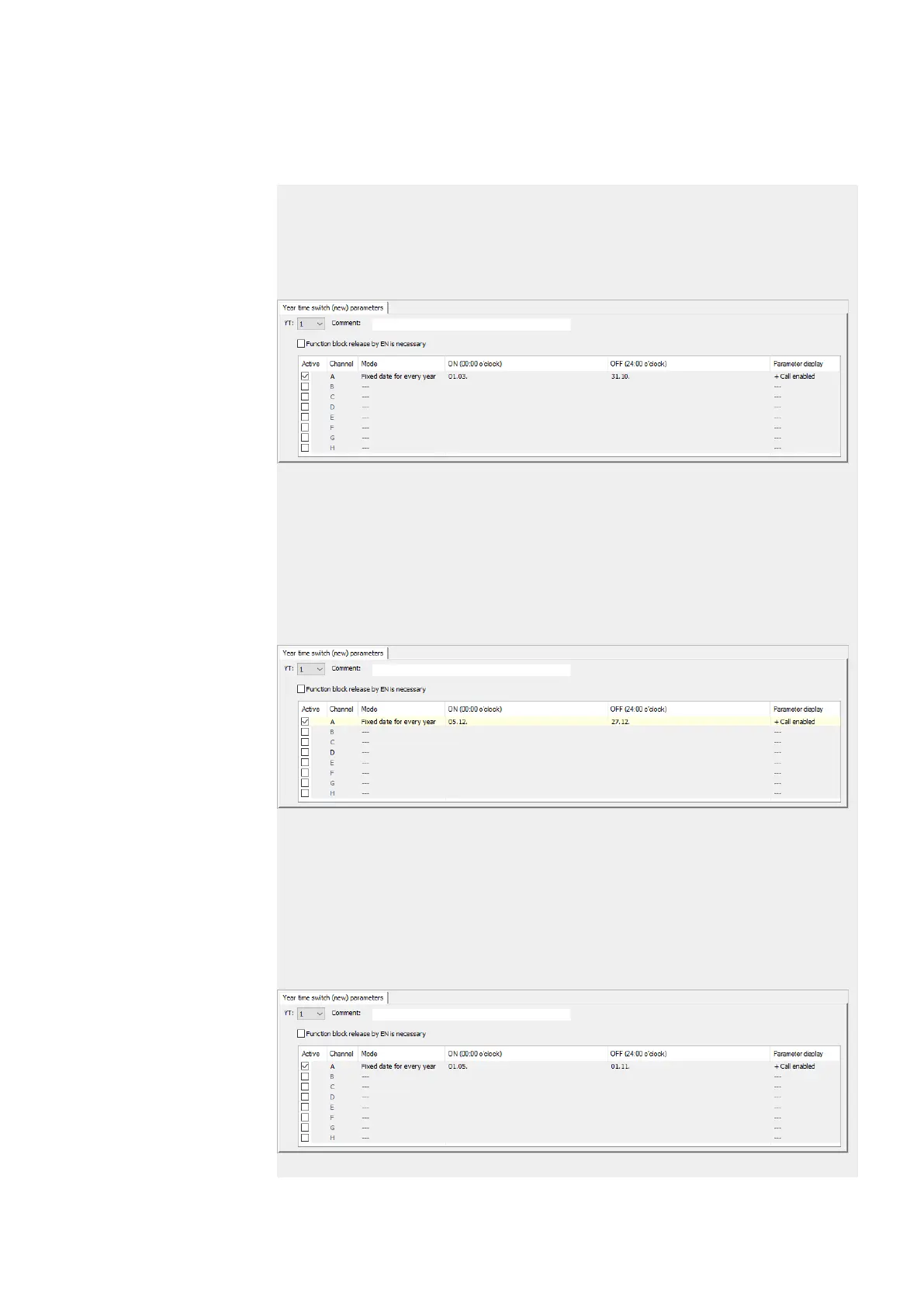 Year time switch YT01 should switch on on 12/05 of every year at 00:00 and remain