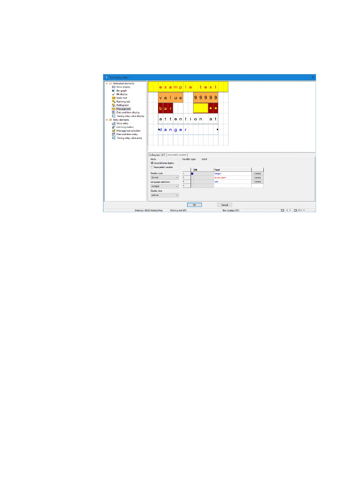 If bit 2 is set in the program at runtime, for example, text 2 will be displayed. If multiple
