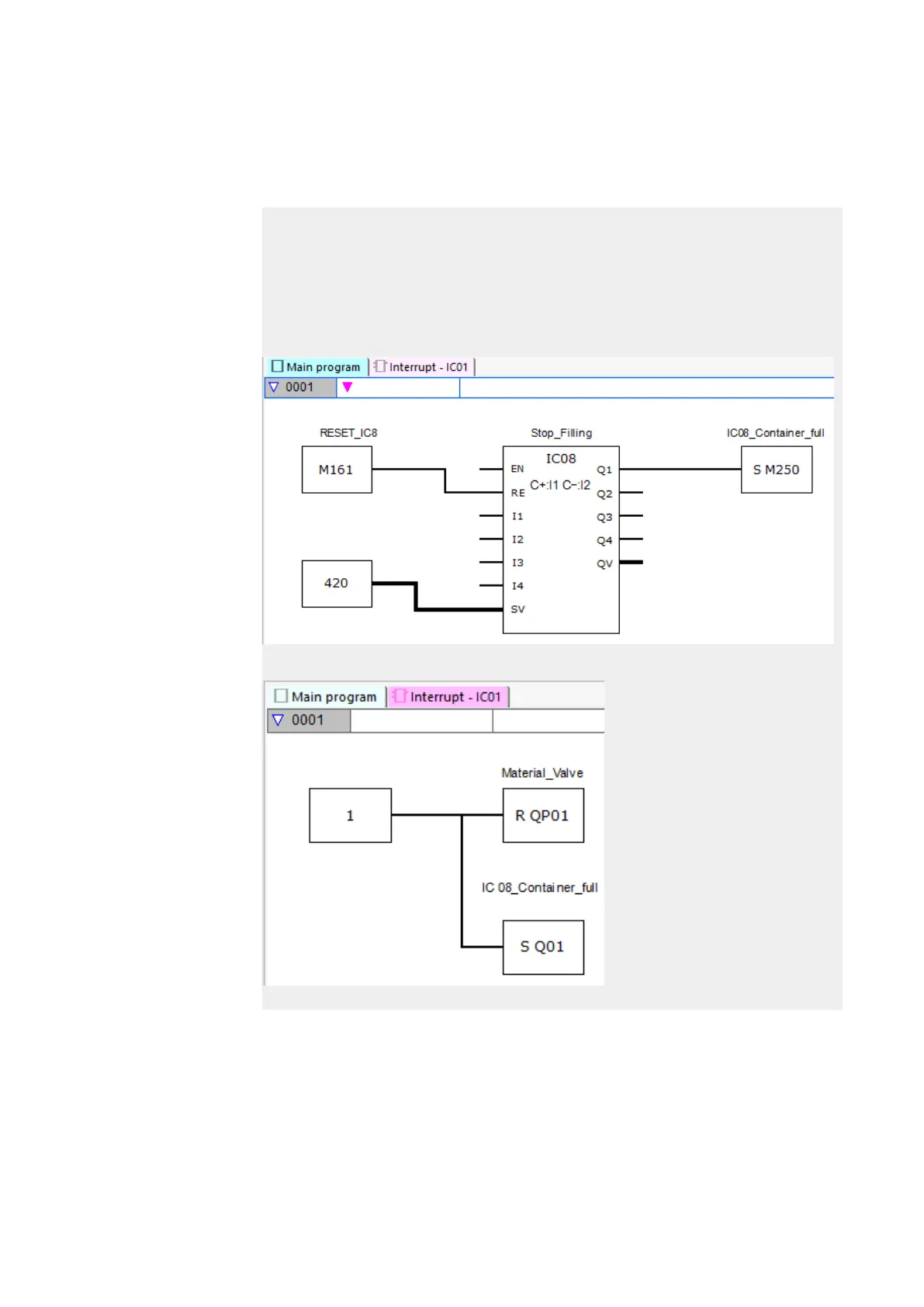 The interrupt program will then set device output Q1 back to 0. In addition, Q01=1 will be