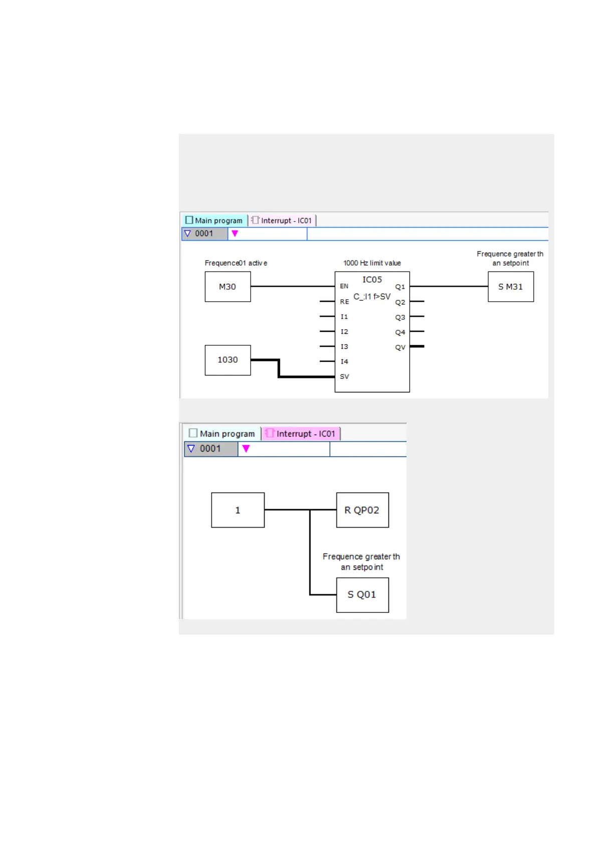 triggered. The interrupt program uses QP02 to reset device output Q2 and SQ01 to set