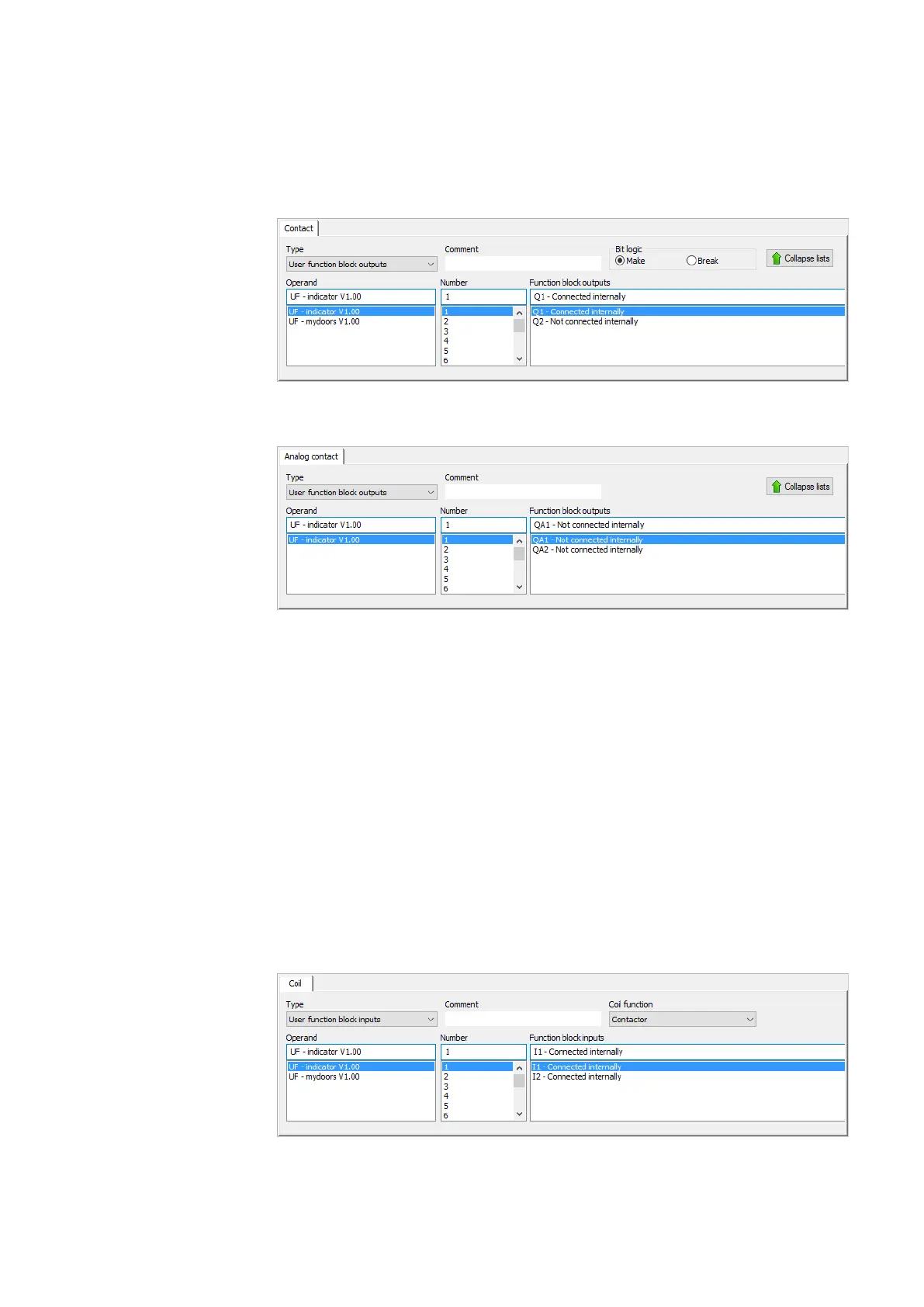 able to select the "User function block outputs" option in the "Type" drop-down menu.