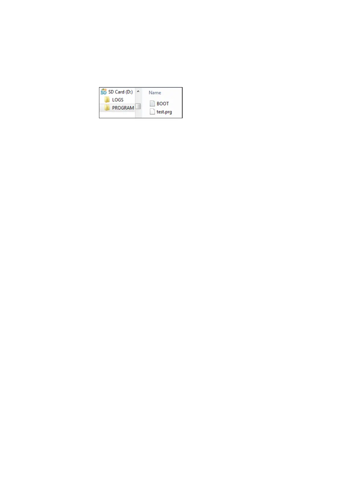 Figure 234: microSD memory card drive with PROGRAM folder contains BOOT.TXT and compiled test.-